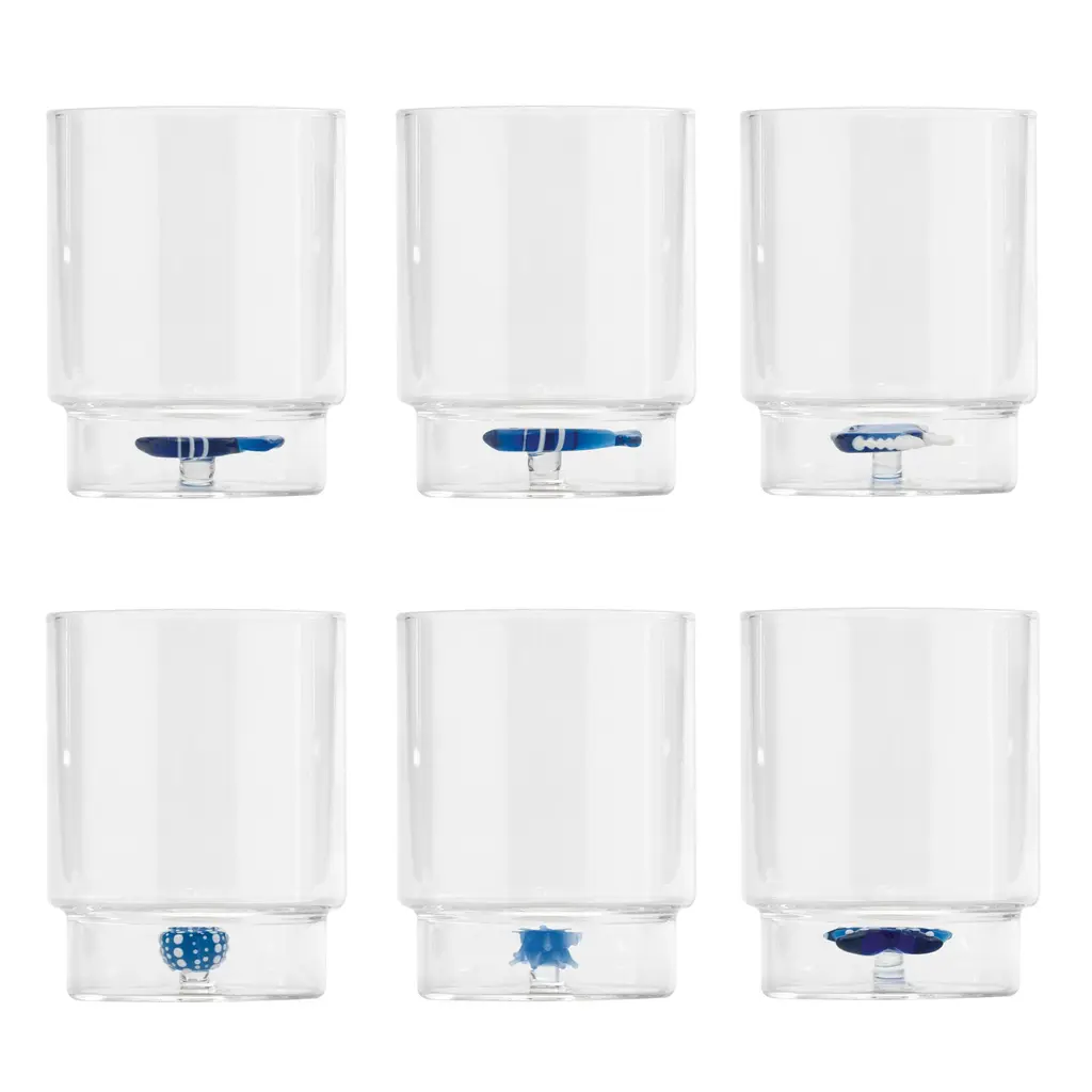 Bring the whimsical charm of the sea to your table with the Teca Mare Tumbler Set from Zafferano. Crafted in Italy from durable borosilicate glass, each tumbler features a revolutionary double-walled base. A delightful, handmade marine creature is safely suspended within, protected from the elements while allowing for easy cleaning and worry-free use with ice. With six different designs, this stackable set lets guests easily identify their glass, blending playful design with smart functionality. Highlights
