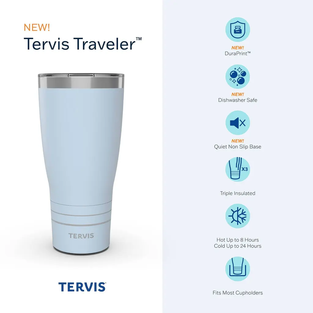 Tervis insulated drinkware delivers the ultimate combination of personality and performance for pure drinking enjoyment. Features: DuraPrint™ technology makes tumblers chip-resistant, peel-resistant, and dishwasher safe. Quiet, nonslip base prevents noisy slipping and sliding. Slider lid is BPA-free, leak resistant, easy to open and close, and easy to clean.Triple insulation reduces condensation and keeps drinks hot for up to 8 hours or cold for up to 24 hours (always use caution with hot liquids).Fits most cup holders for on-the-go convenience, making it the perfect stainless steel travel tumbler and tumbler for coffee.Durable, copper-lined 18/8 stainless steel construction won't retain tastes or odors. Do not soak or use harsh cleaning materials (like bleach, chlorine, etc.) Do not put in freezer or microwave.Manufactured in China. Designed in, printed in, and shipped from Florida, USA. Stainless steel tumblers feature a limited 2-year guarantee.