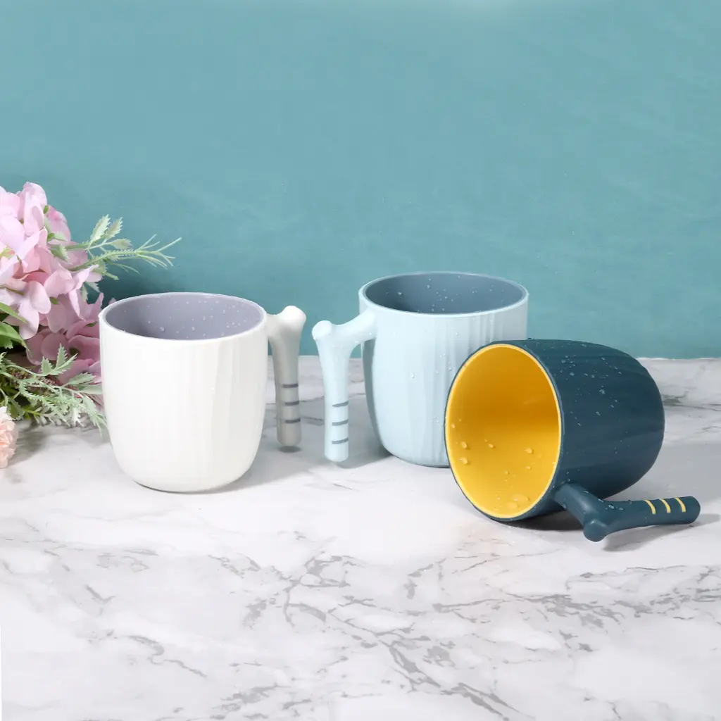 Toothbrush Cup With Handle Reusable Bathroom Tumbler Cup - Grey White