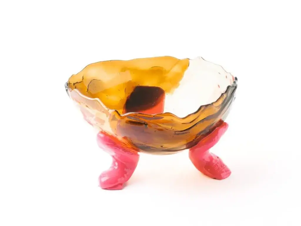 The Tumbler Bowl Collection is a whimsical delight to spark curiosity. Crafted in the form of a cracked ostrich eggshell, balanced on a pair of human arms, these pieces boast a distinctive sand-cast Bronze finish, lending them an organic, tactile texture. Inside, a radiant Gold Leaf finish adds an extra touch of delight. Their petite size makes them a playful and functional addition to bookshelves, entryways, or living room tables, offering a unique catchall for your cherished items.