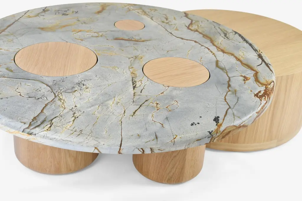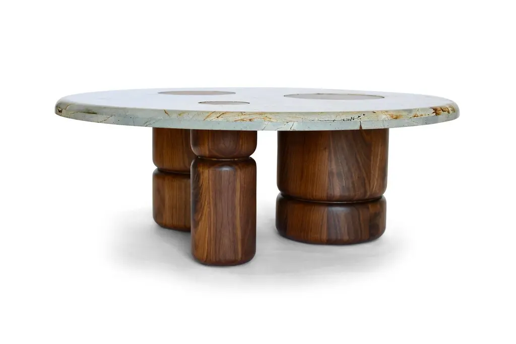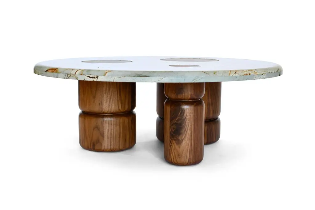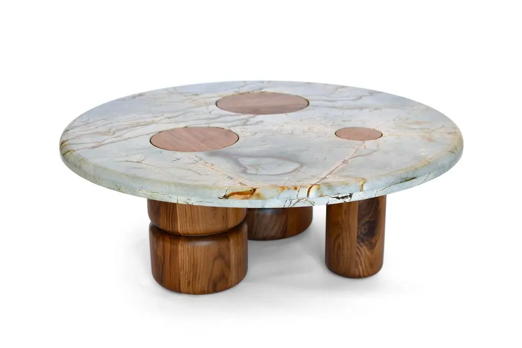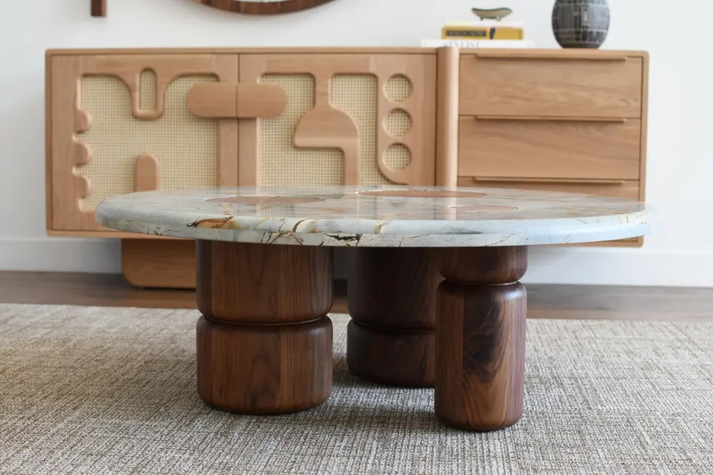 The handcrafted Tumbler Coffee Table is a minimalist design inspired by the Mid-Century Modern period and its masterful use of natural mixed materials. The elegant interaction of marble and solid hardwood create the perfect blend of warmth and texture that can shape any living space.The optional nesting drum provides an additional layer of functionality for display or seating.Available with optional nesting drum for additional surface and seating options.Other sizes and finishes and marble options are available, made to order. FSC certified solid wood construction. Available in three wood types and seven standard finishes. Customization available per approval.Handcrafted in Los Angeles