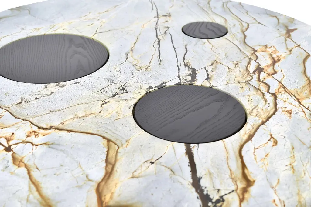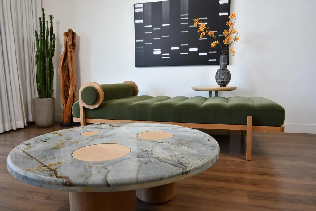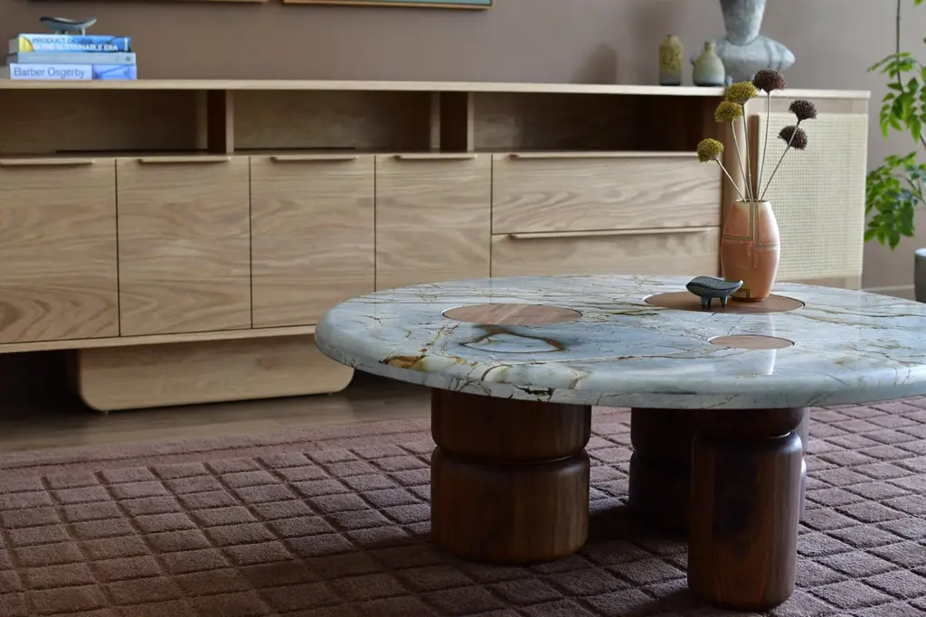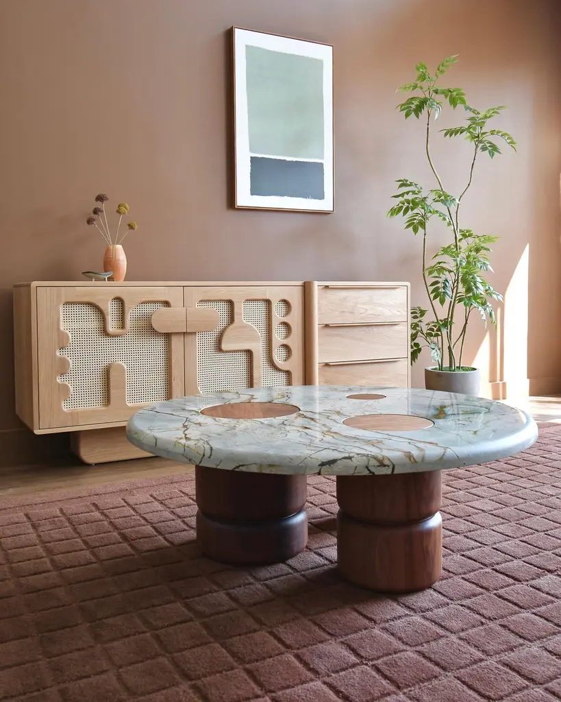 The handcrafted Tumbler Coffee Table is a minimalist design inspired by the Mid-Century Modern period and its masterful use of natural mixed materials. The elegant interaction of marble and solid hardwood create the perfect blend of warmth and texture that can shape any living space.The optional nesting drum provides an additional layer of functionality for display or seating.Available with optional nesting drum for additional surface and seating options.Other sizes and finishes and marble options are available, made to order. FSC certified solid wood construction. Available in three wood types and seven standard finishes. Customization available per approval.Handcrafted in Los Angeles