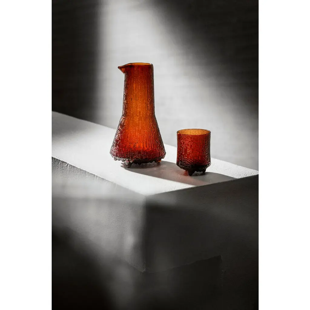 Ultima Thule Old Fashioned glasses are part of Iittala’s iconic glassware range created in 1968 by Tapio Wirkkala. The inspiration for the collection was found in the melting spring ice of Northern Finland. Ultima Thule is based on a so-called ice glass technique developed together by Wirkkala and Iittala – the forms imitate nature and gradually change as the molten glass burns the surface of the wooden molds. In 1969, the Finnish airline Finnair chose Ultima Thule for its new route from Helsinki to New York, and the glassware is still in use at Finnair’s Business Class. Ultima Thule crystallizes the expressive power of Finnish glass design, and the distinctive classic contributed to Iittala’s international breakthrough. Ultima Thule has become one of Iittala’s most popular glassware ranges and it shows very well Wirkkala’s view according to which simple objects are the ones that require most work. This special shade of Ultima Thule tumblers is copper. It complements the cool atmosphere of the Ultima Thule collection with a warm glow reminiscent of northern lights and sunsets. The limited edition color is only available for 2024 and 2025.
