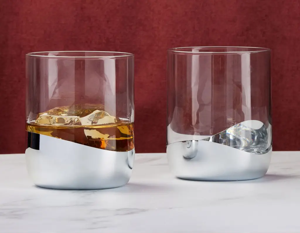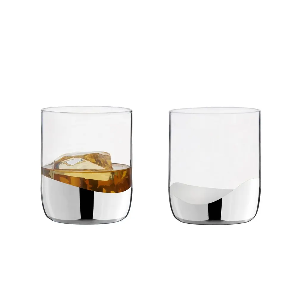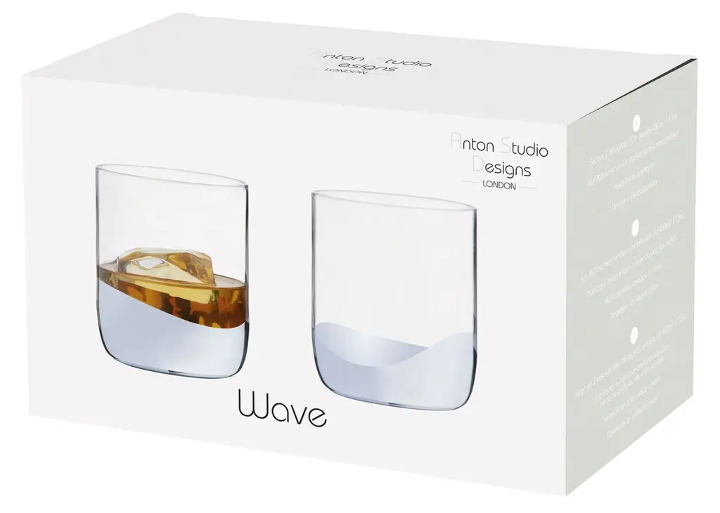 Ideal for water, whisky or just about anything in between, the Set of 2 Wave Double Old Fashioned Tumblers are a great way of enjoying all of these! Mouth-blown and hand crafted, each set comprises two glasses with two complementary metallic designs. The mirrored finish ebbs and flows around the glass creating the Wave look. Perfect for entertaining guests or simply enjoying a glass of wine at home, these glasses are sure to impress. Each set comes smartly gift boxed too.