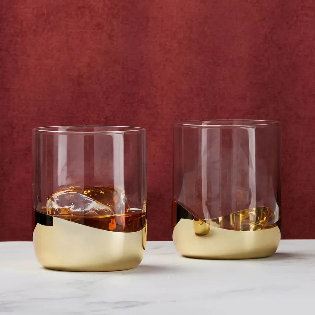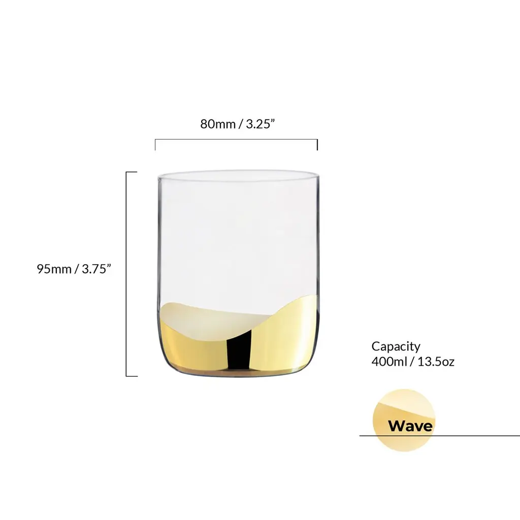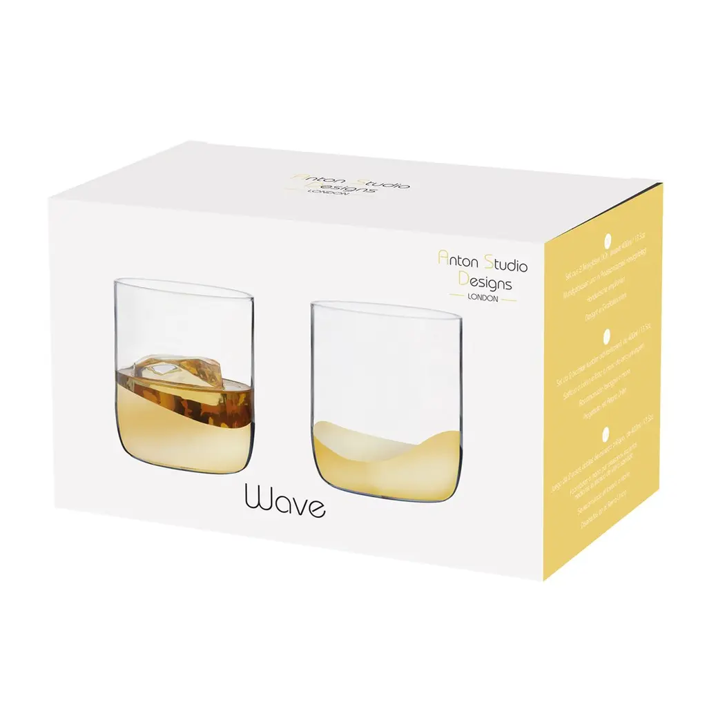 Ideal for water, whisky or just about anything in between, the Set of 2 Wave Double Old Fashioned Tumblers are a great way of enjoying all of these! Mouth-blown and hand crafted, each set comprises two glasses with two complementary metallic designs. The mirrored finish ebbs and flows around the glass creating the Wave look. Perfect for entertaining guests or simply enjoying a glass of wine at home, these glasses are sure to impress. Each set comes smartly gift boxed too.