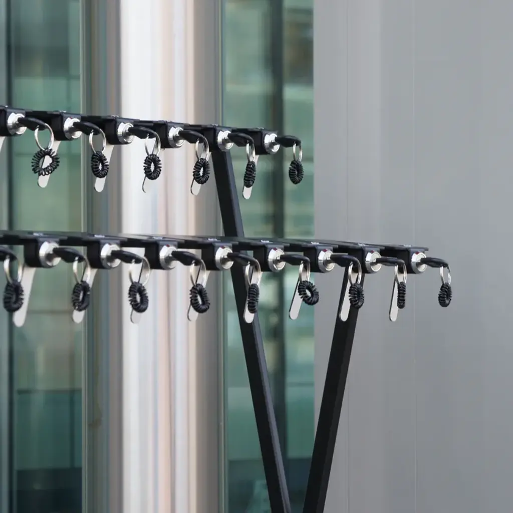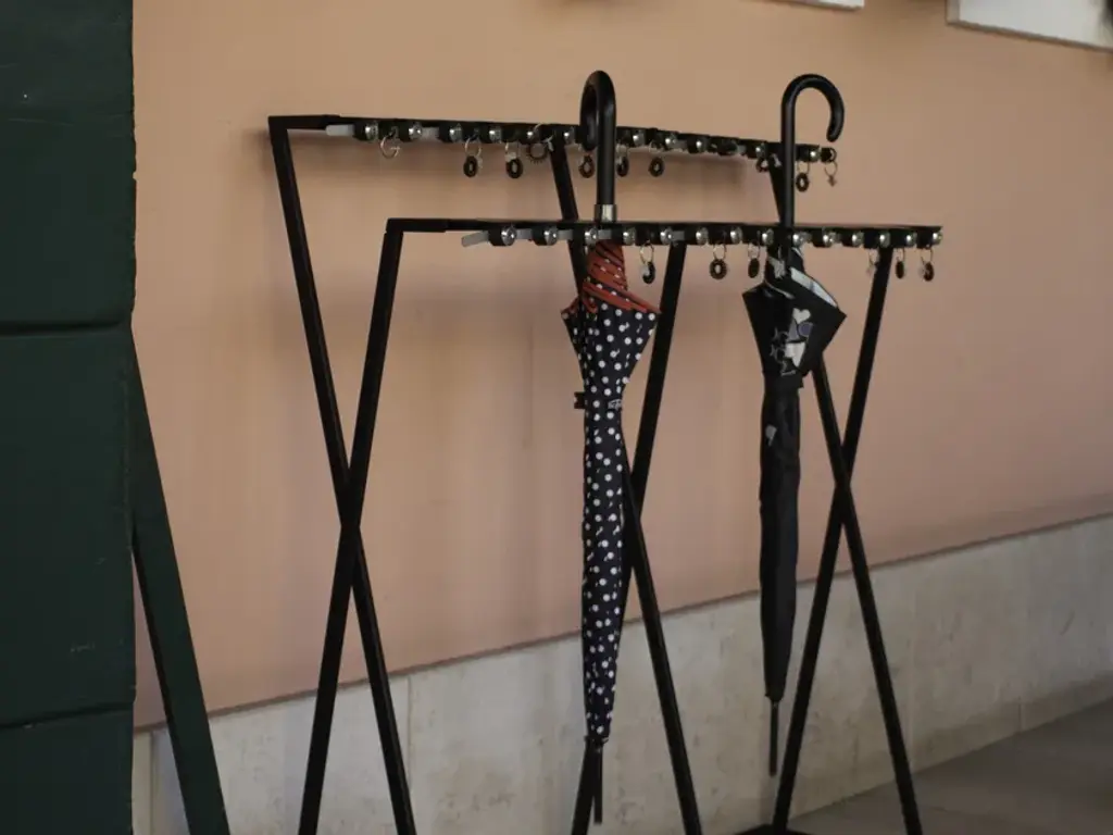 28-seater steel umbrella stand with padlock.FEATURES:- Modular- Steel structure, accessories and bowl- Numbered keys with rubber bracelets- Keys with antismell handle- Two unique keys individually replaceable for every padlock - Numbered umbrella places- Removable bowl even with the presence of umbrellas- Anti-slip pads- The possibility to insert two umbrellas in the same place- Accessible to elderly, blind or disabled people- The magnetic tray is always anchored to the umbrella stand, ensuring the movement- CustomizablePlease see the "Colors" pdf for more information on the colors on sale.