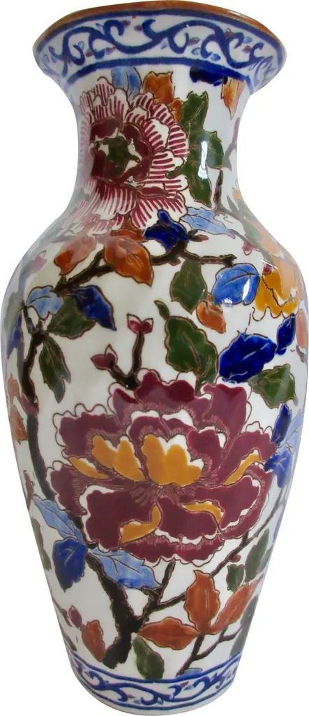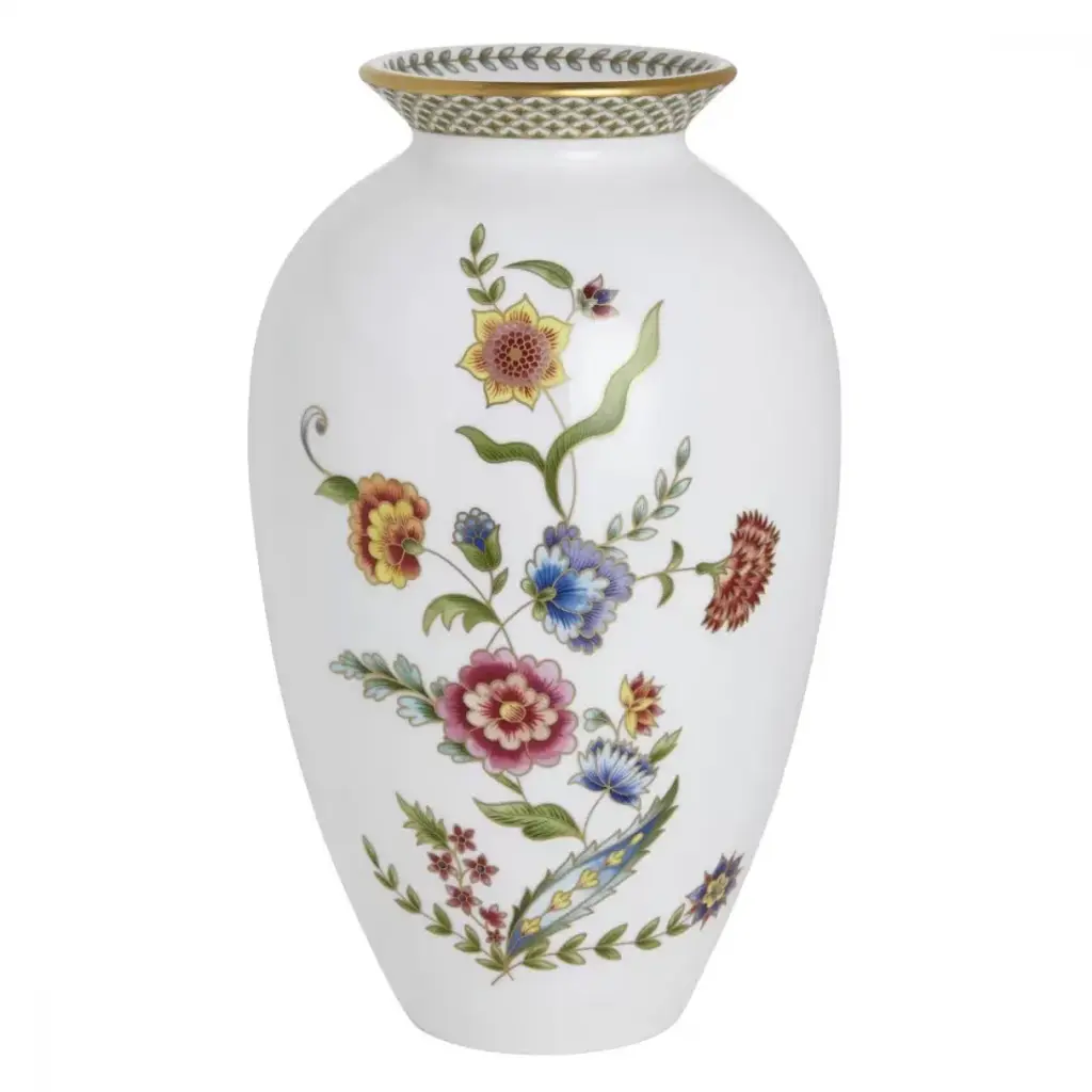 Echoing the seductive hues and subjects of oriental porcelain artifacts, this precious umbrella stand will imbue any entryway with its romantic personality. The harmonious body in a classic shape is fashioned of fine white porcelain, against which is set an intricate, polychrome decoration of lush flowers painted in vibrant tones ranging from blue to purple, their stems accented in precious gold.