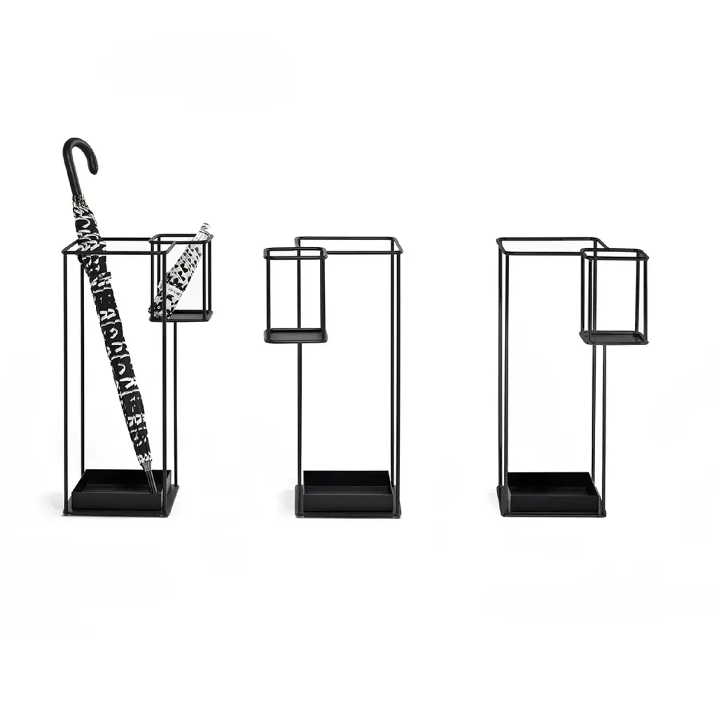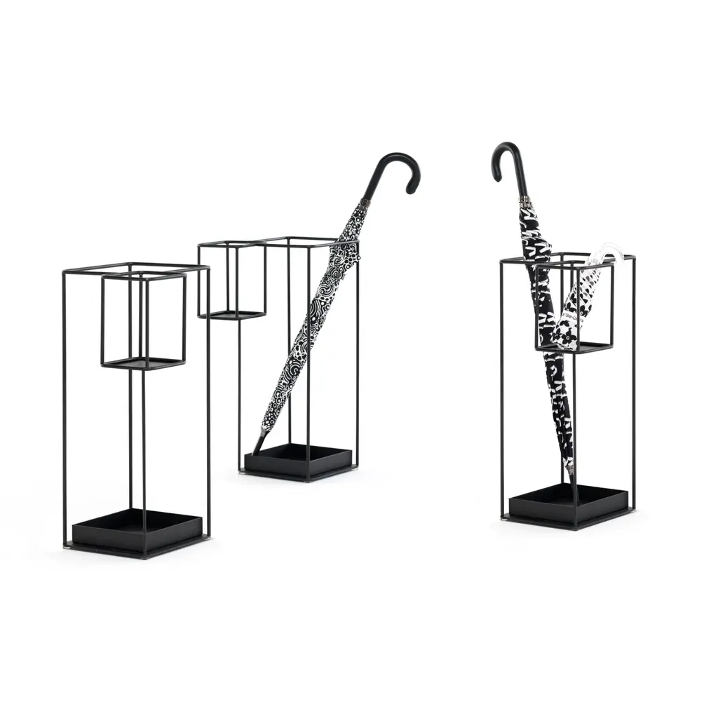 Introducing Duo, your elegant and practical solution to umbrella storage. Made of sleek black painted metal, this stand boasts simple lines fit for any style. With space for both classic and folding umbrellas, Duo is a must-have accessory for any fashion-forward individual.