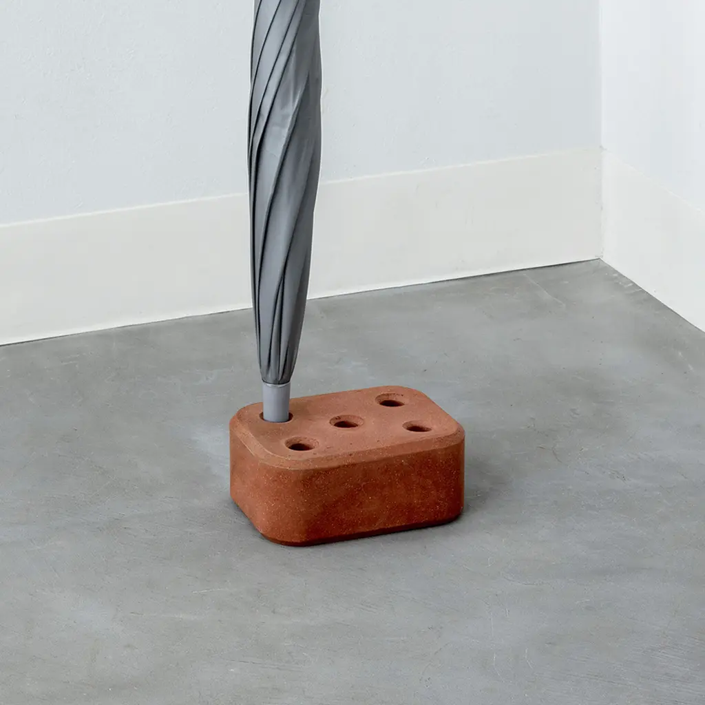 Add a quirky accent to your home’s entrance with the Brick Umbrella Stand. Designed by Wataru Kumano for Moheim, Brick is a multifunctional object that can be used as a support for umbrellas or as a door stopper. The minimalist design draws inspiration from perforated bricks, bringing warmth into living spaces and enhancing any décor with a rich texture. Each piece features five perforations that allow you to store umbrellas and keep them close at hand by the door. Made in Japan with sustainability in mind, the Brick umbrella stand features 70% recycled clay, ceramic, and slag, with 30% virgin clay. As a result, every product is one-of-a-kind and features subtle variations in color and texture.