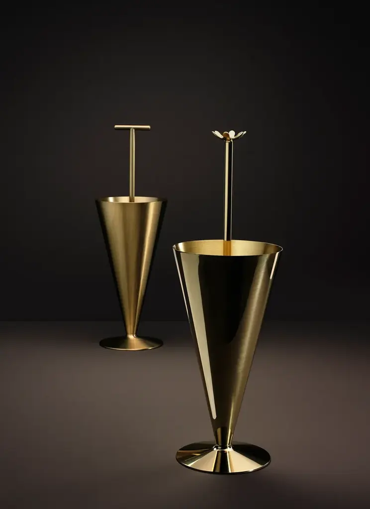 Inspiration for this umbrella stand was found in the shape of an umbrella, as can be seen in antique predecessors. The handle has been conceived as a hook for the foldable umbrella's. It’s a contemporary interpretation of a classic product typology.Butler - Umbrella Stand:- RH502PB101: Polished brass- RH502SB101: Satin brass- RH502BB101: Brown Burnished Brass- RH502DD101: Matt BlackThis product belongs to the Ghidini1961 latest capsule collection, the " Midnight Glory: Ghidini1961's Blackout Collection." This exclusive collection redefines urban living with a carefully curated selection of premium design chairs and accent pieces that embody sophistication, innovation, and exclusivity.Featuring iconic items such as the Miami Chair, Frying Pan Mirror, Butterfly Coatrack, Bullet Vase, Opera Tables, and others, the "Blackout Empire: Ghidini1961's Midnight Collection" showcases the brand's unwavering commitment to exquisite craftsmanship and design excellence. Each piece is meticulously crafted with a new handmade finish, blending industrial know-how with exclusivity of design and materials.The " Midnight Glory: Ghidini1961's Blackout Collection " represents a bold statement of urban elegance and sophistication. From the sleek lines of the Opera Tables to the whimsical charm of the Butterfly Coatrack, each item invites you to experience the perfect fusion of industrial chic and modern luxury.