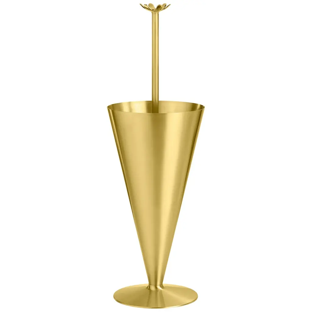 A refined addition to modern entryways, this stunning design was conceived by Richard Hutten as a playful reinterpretation of the classic umbrella stands. Its shape resembles a partially furled umbrella, incorporating a round base as an extra element necessary to guarantee its support. A central shaft, emerging from within the canopy-like cavity where umbrellas get stored, completes the design, enlivened by a flower-shaped handle.