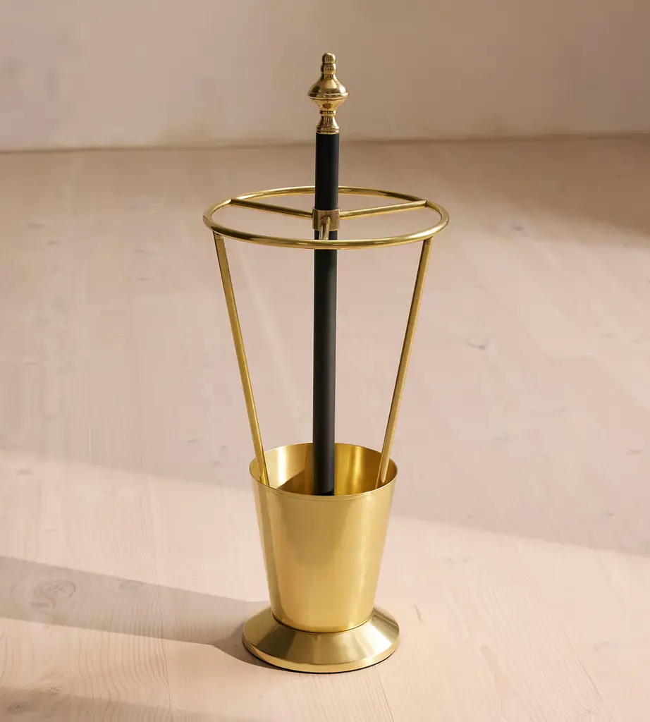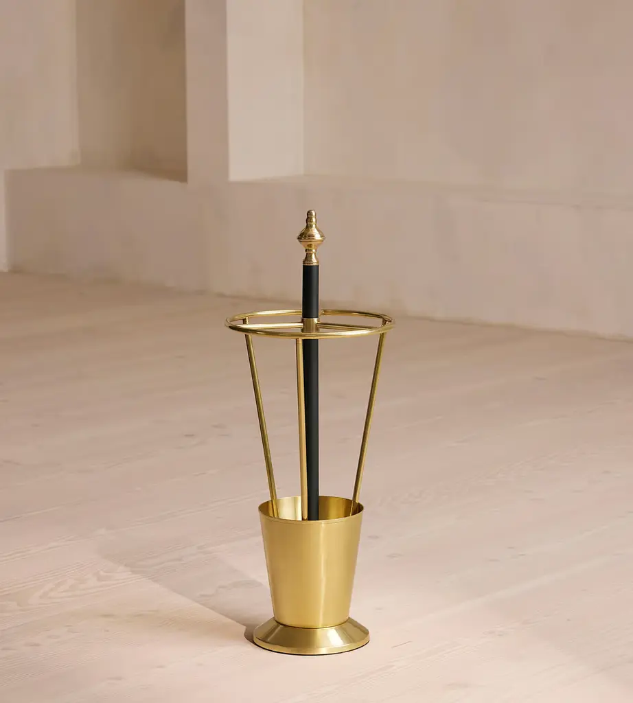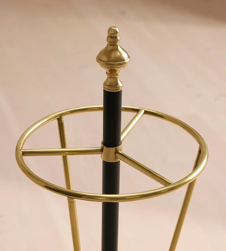 Our Casis umbrella stand is a classic design inspired by the interiors of Dean Street Townhouse. Two-tone brass is contrasted with blackened brass details with a decorative finial, while the solid angular base adds modern elegance to a traditional style.