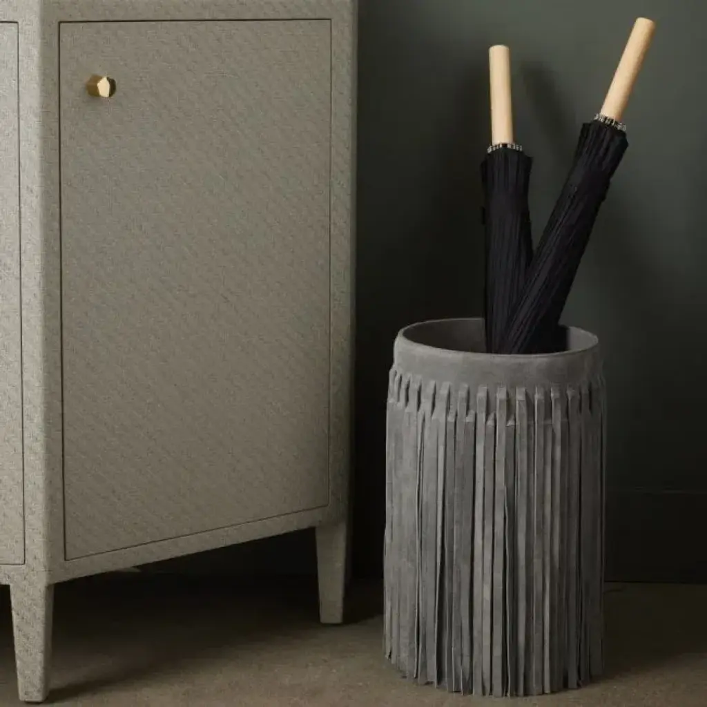 Playful fringe makes this suede umbrella stand more than just an accent piece. The interior is lined with chambray and a protective bottom tray insert is included. The designers at Pigeon & Poodle believe the details of a home are just as important as the furniture. A gorgeous toothbrush holder or handcrafted canister can elevate an entire bath, the perfect frame can heighten the feel of a whole space, and a good-looking storage basket can be your look’s missing link. With thoughtful design and top-notch craftsmanship, Pigeon & Poodle create home accessories with the care and attention typically reserved for larger pieces of décor.