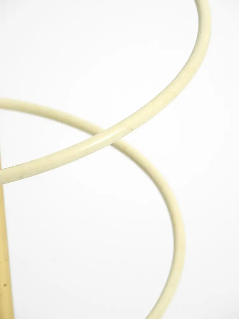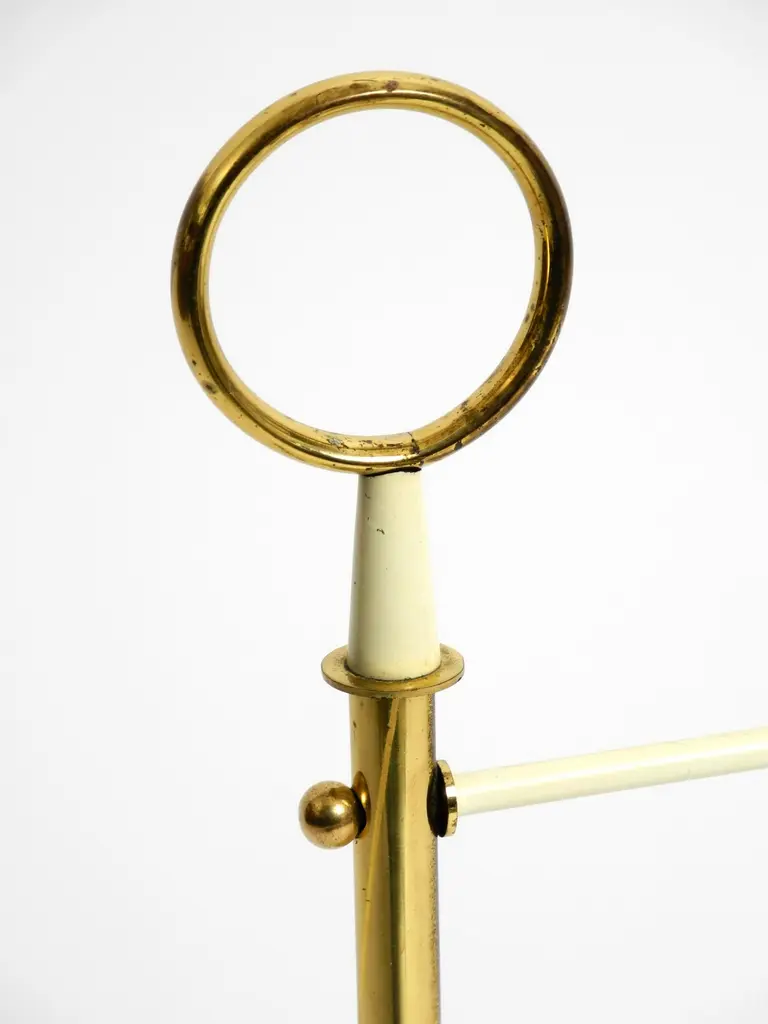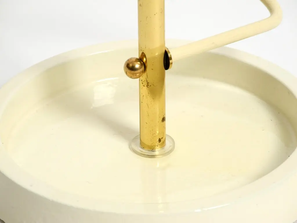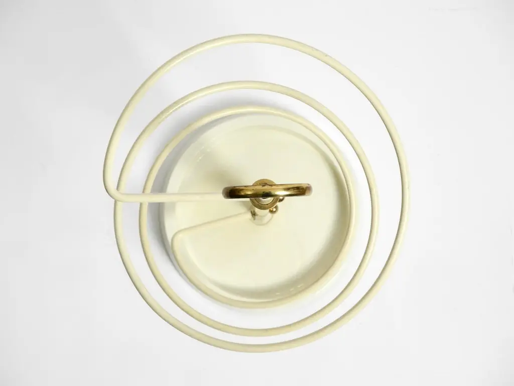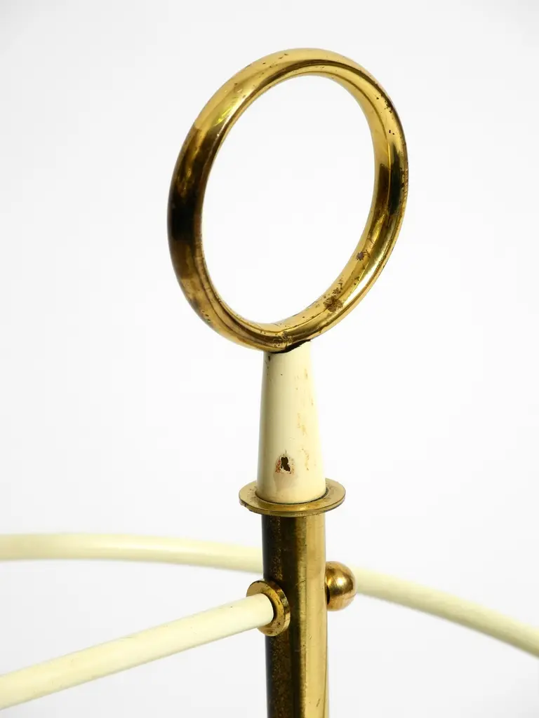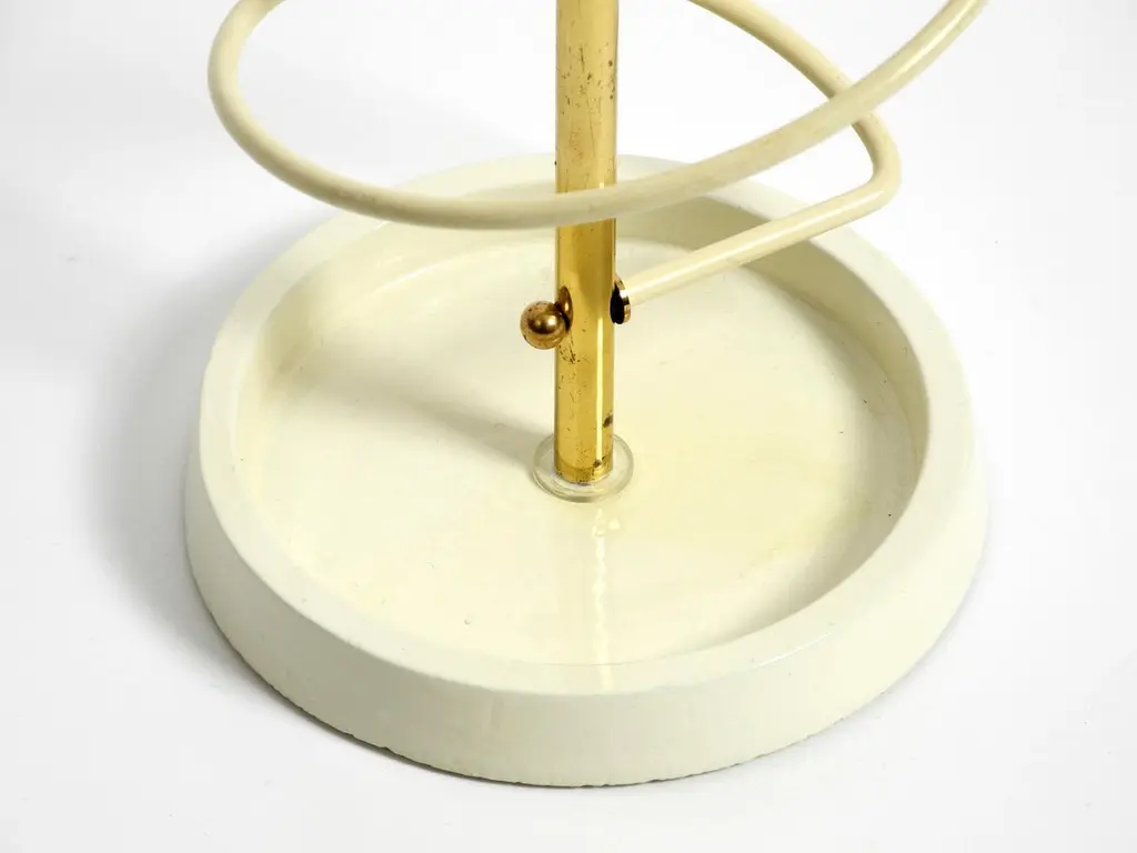 Exceptional rare Mid-Century Modern umbrella stand.Very elegant minimalist string spiral design.The base is made of cast iron and the metal spiral has a plastic coating.The round handle is made of brass.Very good condition without damages with minimal signs of wear.Only the cast-iron base was professionally prepared and repainted in the same color.Nice patina, no damage.100% original condition and very decorative.Measures: Height: 53cm 20.9"Metal spiral diameter: 21 cm 8.3"Diameter base: 16.5 cm 6.5".