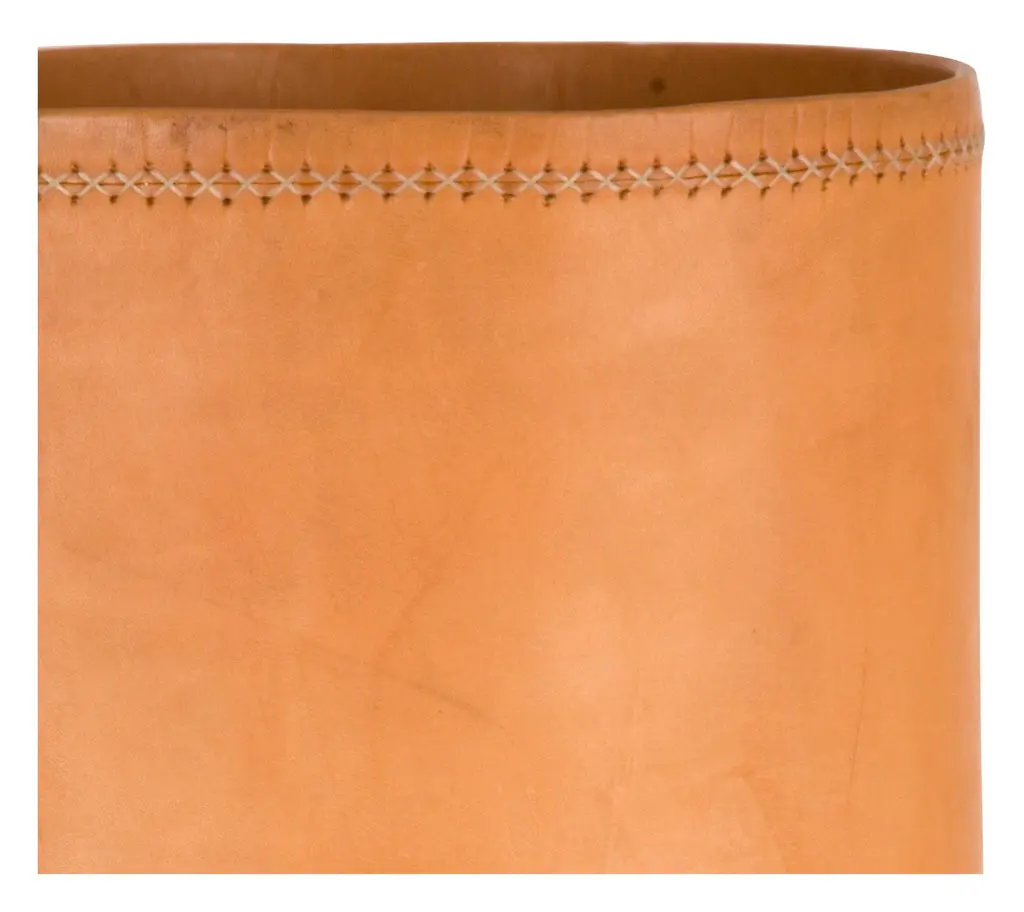 Our handsome Leather Umbrella Stand is a luxe upgrade on an entryway essential. Simple yet sophisticated, this caddy is crafted from durable Paraguayan leather, with hand-stitched details at its seams. With a removable zinc saucer in its base, our Leather Umbrella Stand is the perfect place to stash a soaked umbrella on a rainy day. •natural leather •cross-stitch detail at seams •zinc saucer in base Dimensions •8.75" diameter x 21.75"H