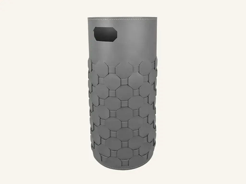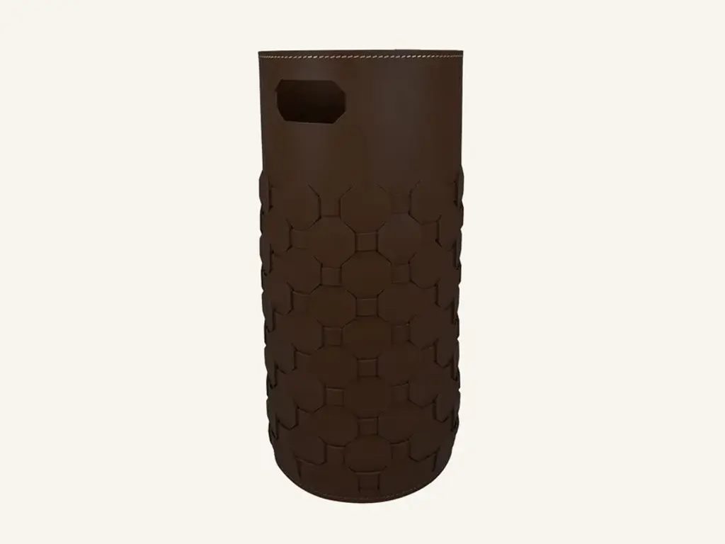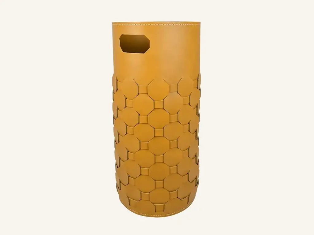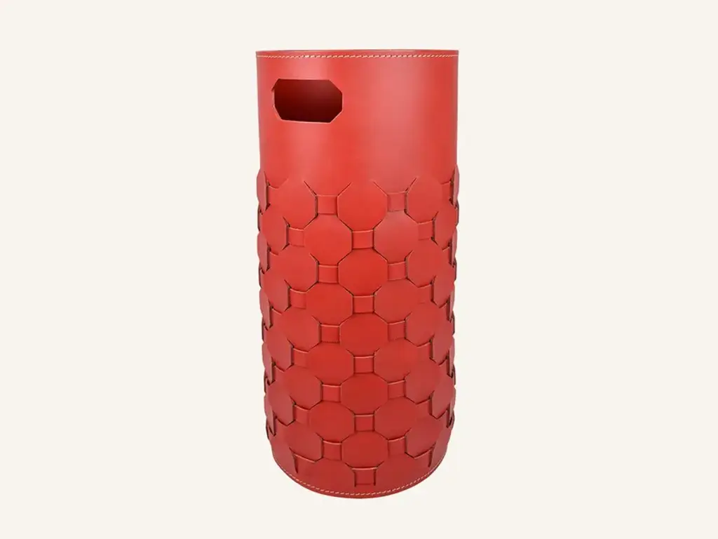 The elegant LUMIA woven leather umbrella stand was designed by LIMAC Design and handmade in Italy by our artisans who have been working leather for generations, giving the raw material a unique shape. It is a woven leather umbrella stand with an extremely original design and attention to detail, ideal for a refined and elegant environment, such as the hall of a hotel or the reception room of a prestigious studio, but also simply at the entrance to the own home.Equipped with a practical handle, which always recalls the geometric shape of the weave, convenient for moving it. This original article is made of regenerated leather both outside and inside and the coated plywood bottom makes it a resistant and durable product.The elegant LUMIA woven leather umbrella stand is available in a wide range of leather colours, so as to satisfy your every need: Dark Brown, White, Red, Brown, Grey, Black, Taupe and Yellow.