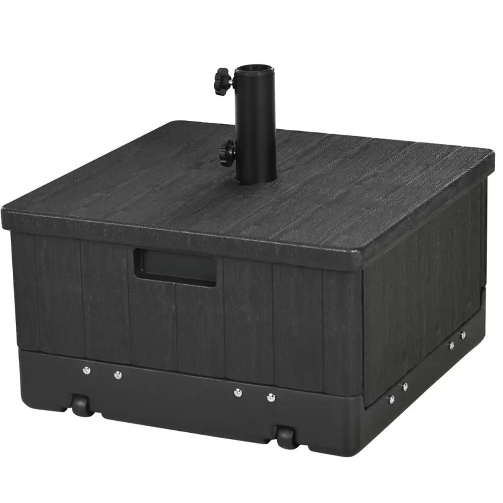 Outsunny offers an umbrella base with heavy-duty weight and more than one use. This three-in-one umbrella stand also works as an end table and the top removes so you can use it as a flower box. It's capable of holding 175 lbs. of sand and can support even extra-large double umbrellas. Use the large surface to share morning coffee or night time wine. Created with wheels on the bottom, it can make your market umbrella mobile. Create your own oasis with Outsunny.
