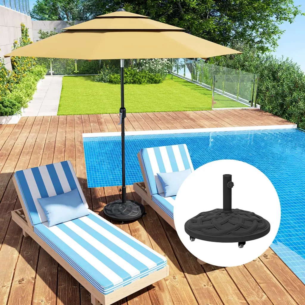 Outsunny Round Patio Umbrella Base With Wheels, 44 Lbs Resin Umbrella Stand Base, Patio Umbrella Holder For 1.3"/1.5"/1.9" Umbrella Poles, Black