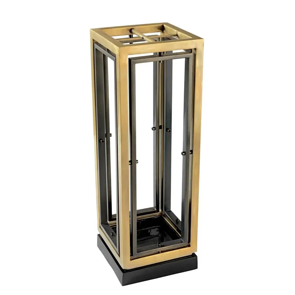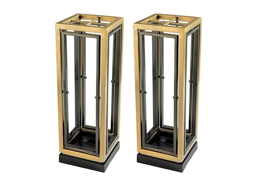 Pair of geometric umbrella stands, patinated brass and bronze finishPair of umbrella stands, contemporary design in brass and patinated bronze.L. 20 W. 20 H. 59 cm