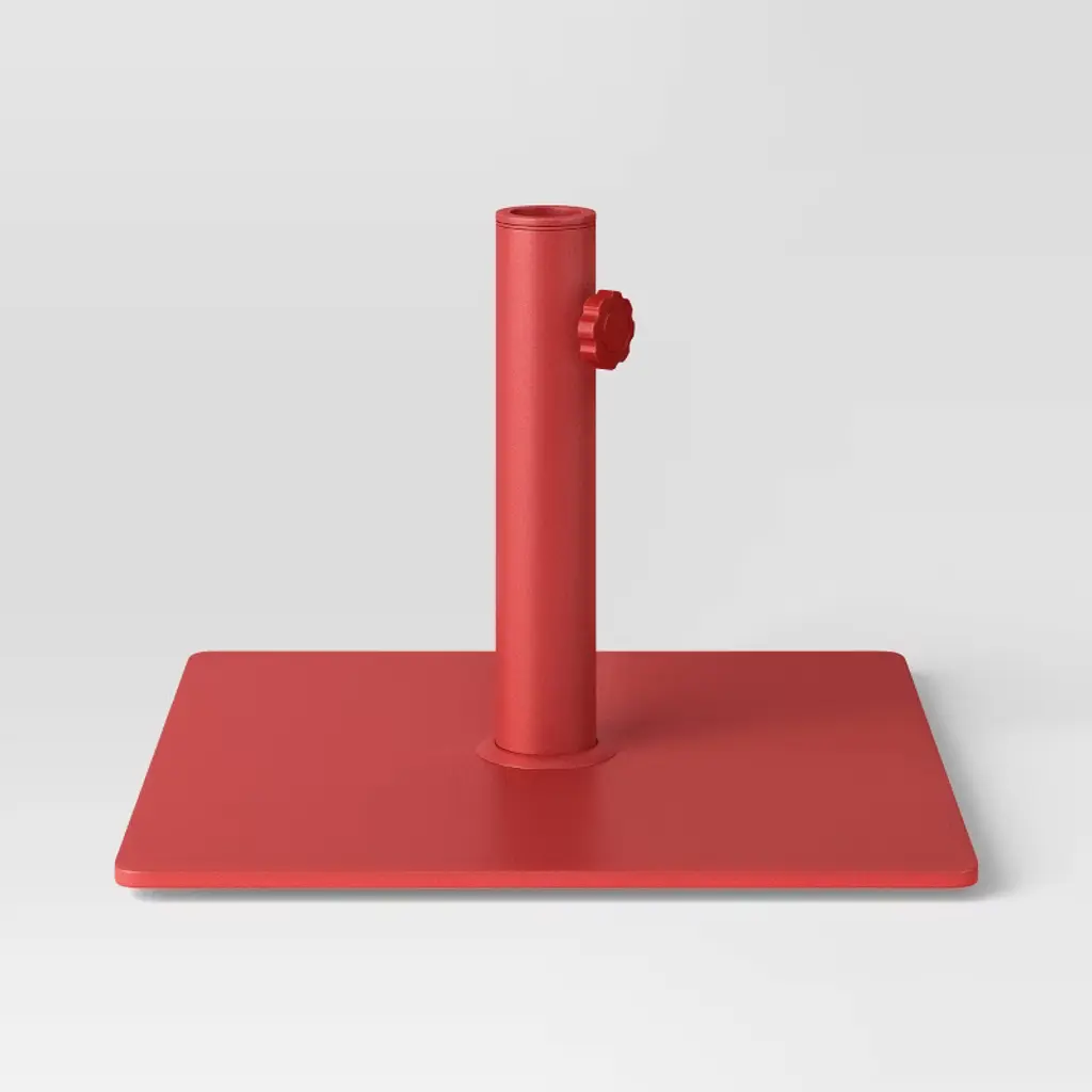 Made of powder-coated steel, this 50-pound concrete-filled umbrella base is sturdy, strong, and designed to keep your umbrella steadily anchored to the ground.