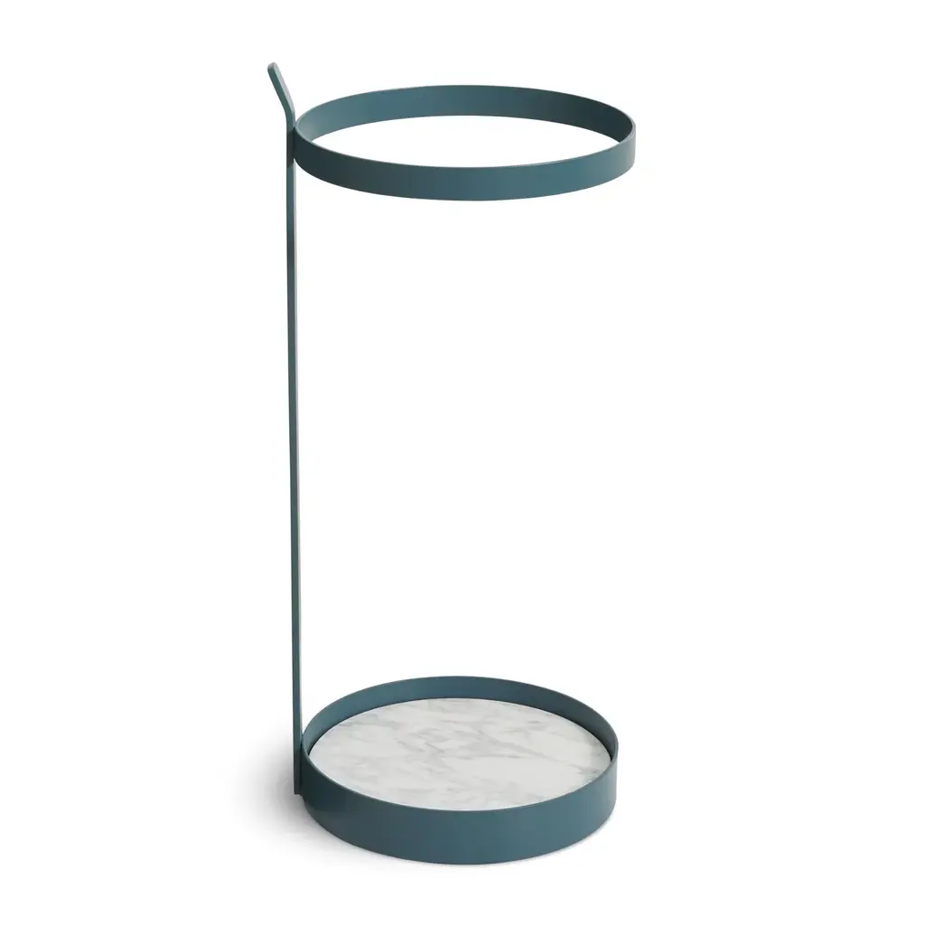 Perfectly postured steel is ready to wrangle the drippy or dry umbrella. Pitter Patter’s top tab provides a spot to hang compact style umbrellas and a marble inset base keeps this entry necessity stable and lovely.
