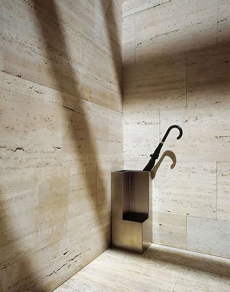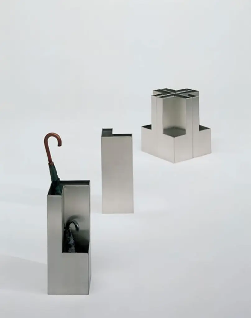 Designed by Isabel Gamero and Jordi Pérez for BD, The Plec umbrella stand is a piece of simple, functional beauty. The uniform silhouette and semi-matte polished stainless steel make for an elegant minimalism that is stable, refreshing and discreet. It can store large and small umbrellas with its two levels. The base is shaped at a 90-degree right angle, allowing it to sit comfortably in any corner, using its surroundings for a practical purpose.DIMENSIONS:25 x 25 x 61 cm9,8 x 9,8 x 24 ”