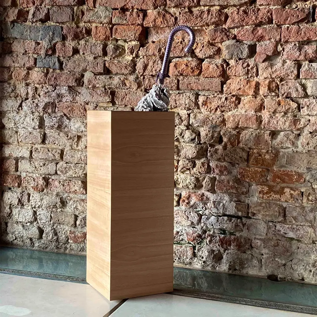 Aptly named after the Italian word meaning "plinth" due to its rigorous, restrained geometric silhouette, this umbrella stand is an original design by Meccani Studio that will effortlessly blend into any modern-style interior. The solid light walnut structure is enriched with an elegant wedge finish that, its natural grain true focus of this otherwise merely essential design.