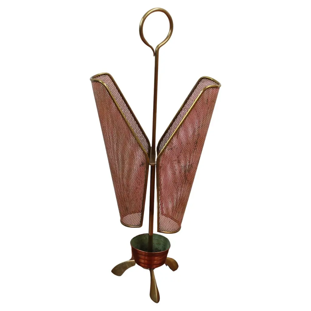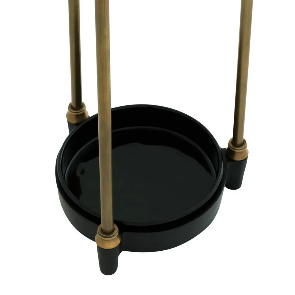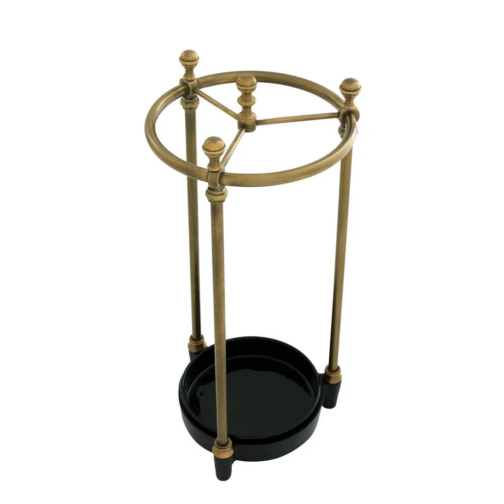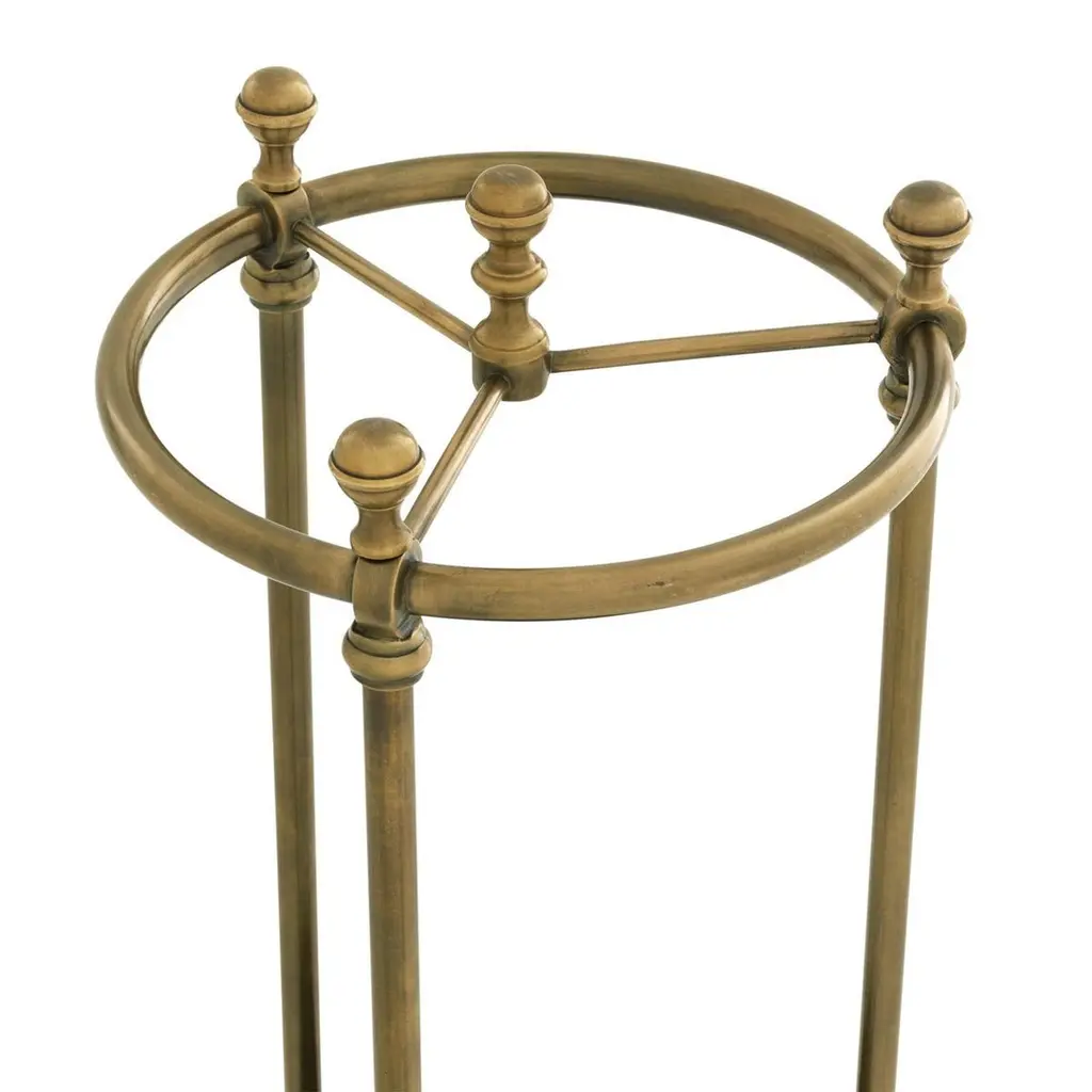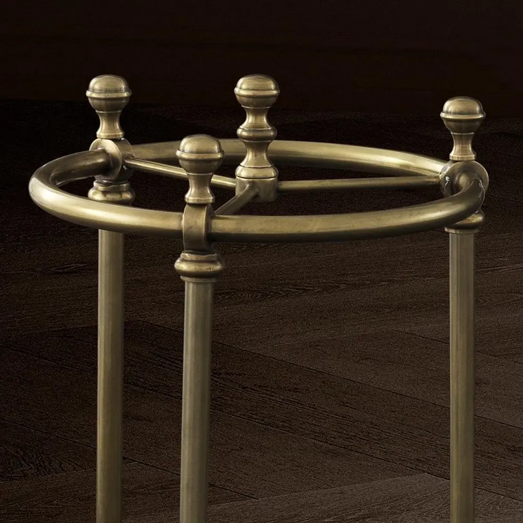 Umbrella stand rock brass with structurein solid brass in antique finish, with blackironed base.