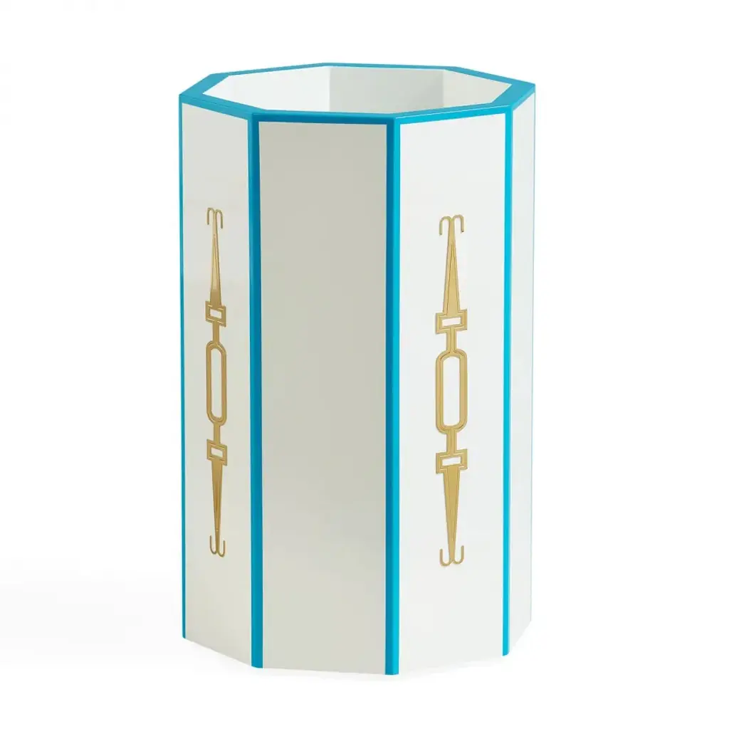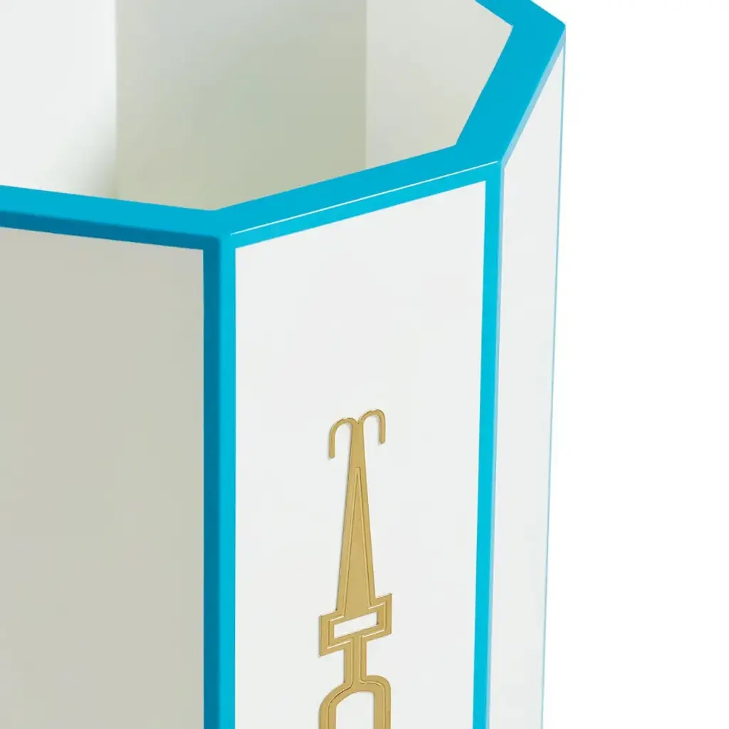 Modern Glamour.Chic Chinoiserie meets Park Avenue flair. Functional and très chic, our Turner Umbrella Stand features a high gloss lacquer finish, bold blue color along its edges, and polished etched brass accents. Your umbrellas will thank you.