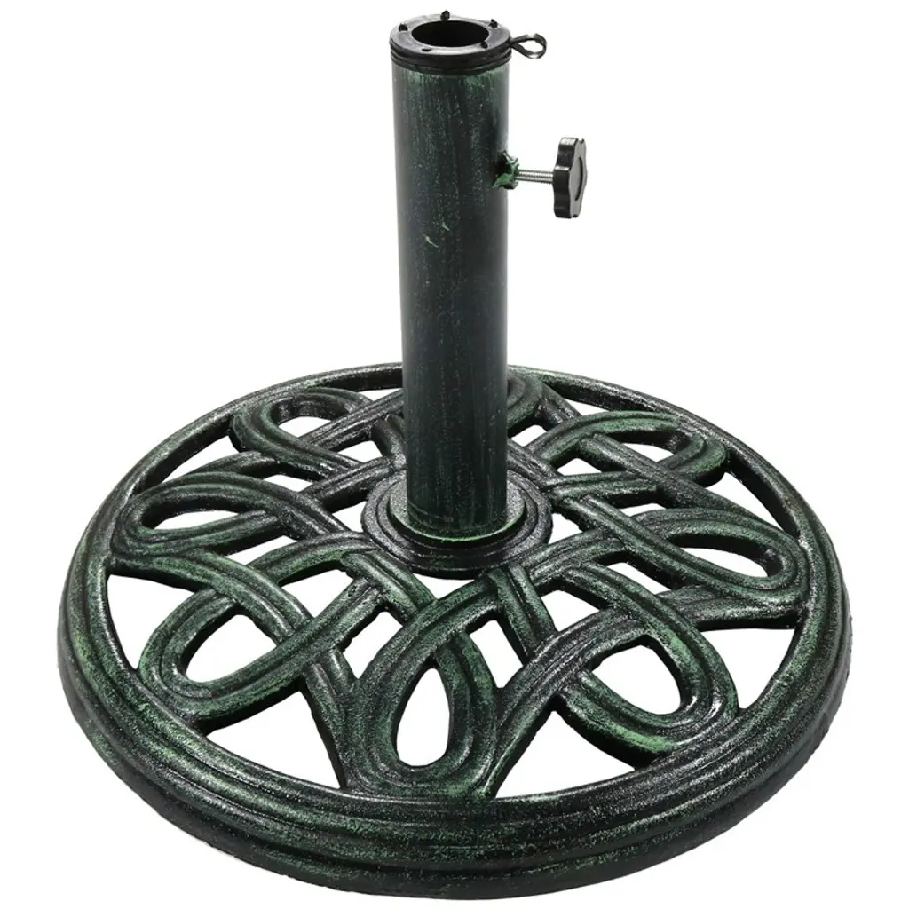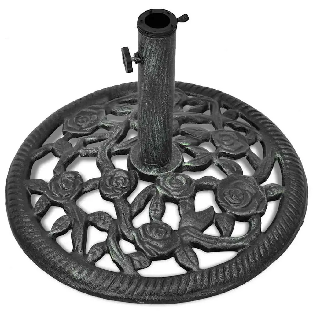 This Vintage Floral Cast Iron Umbrella Base looks great and works well for outdoor dining spots or chill areas. The lovely floral design adds a splash of beauty, while it keeps your patio umbrella held firm against different weather conditions, making your garden or balcony even nicer. Decorative Floral Motifs: The lovely floral design gives this base a vintage look that goes with any outdoor space, creating a warm vibe.Heavy-Duty Material: Made from tough cast iron, it keeps your umbrella stable even on windy days, ensuring your shade is just where you need it.Textured Finish: The textured surface not only looks good but also feels nice, making it a great addition to your garden furniture.Easy Maintenance: Keeping this stand looking sharp is a breeze; just wipe it down with a damp cloth, perfect for busy outdoor lifestyles.Multifunctional Use: Designed for outdoor spaces, this base is perfect for balconies and gardens, making sure umbrellas stay put in both style and function.