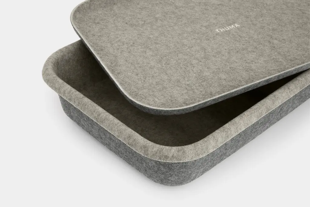 Thoughtfully designed to hold and protect, this sophisticated storage staple makes smart use of underbed space. Crafted from recycled PET felt, the Felt Underbed Bin is understated, sculptural in form, and generous in size. Features a sturdy lid and textured bottom panel for easy sliding and quick access.