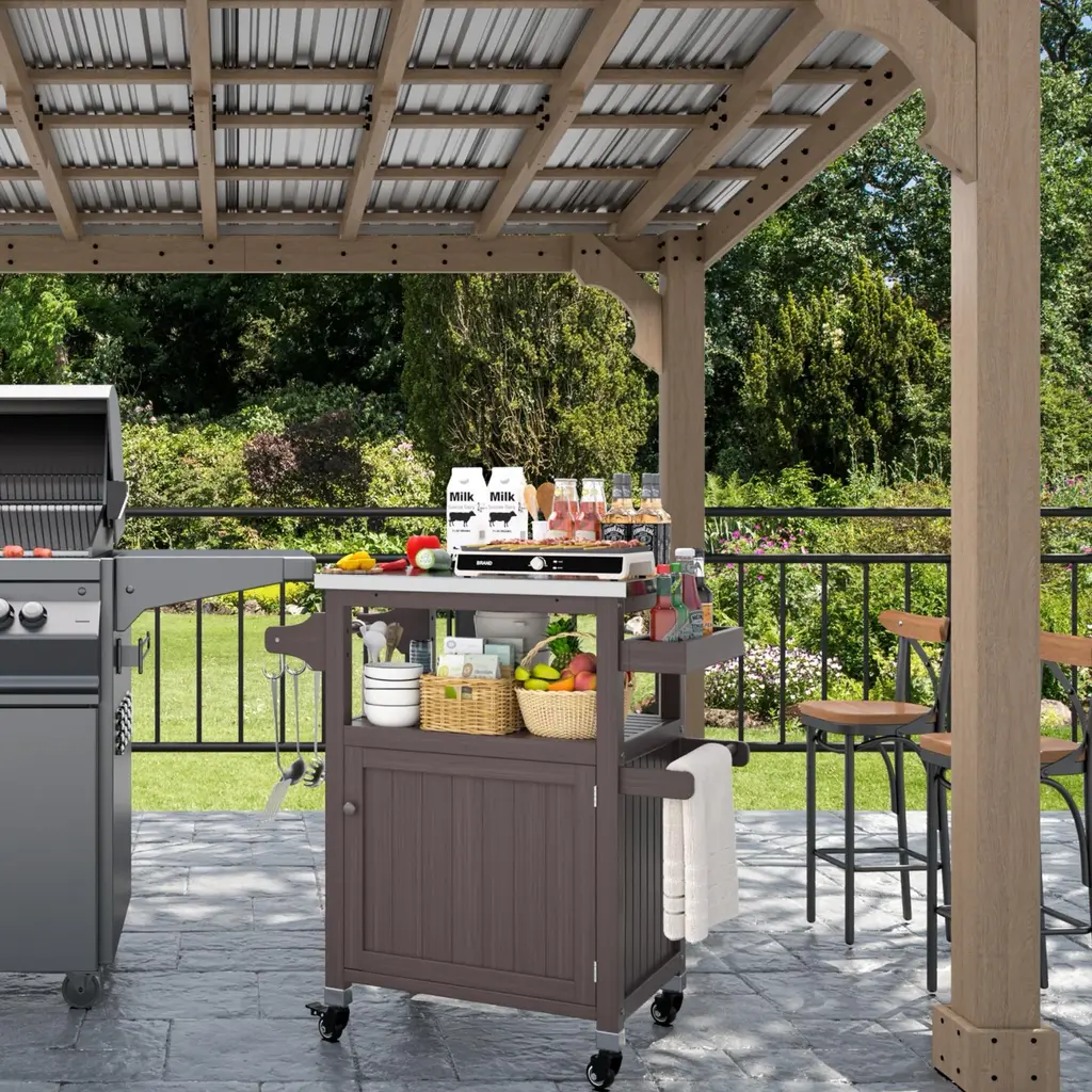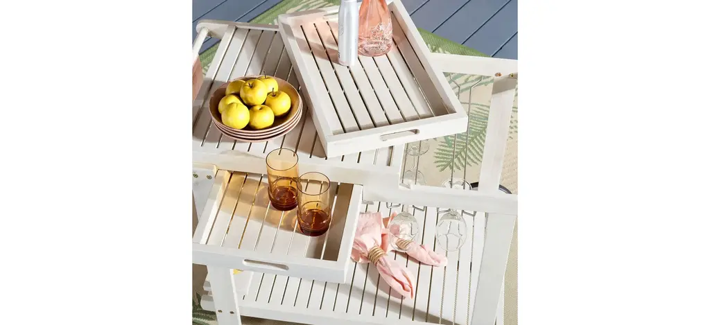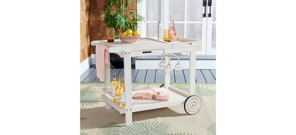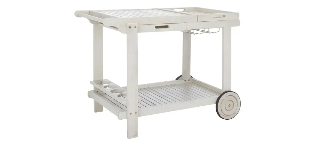 Backyard barbecue chefs will appreciate the carefree luxury of a portable serving cart like the portable Orland outdoor tea trolley. Crafted of eco friendly acacia wood in a sleek gray finish, Orland is loaded with amenities like glass holders, a drawer, and convenient serving tray.