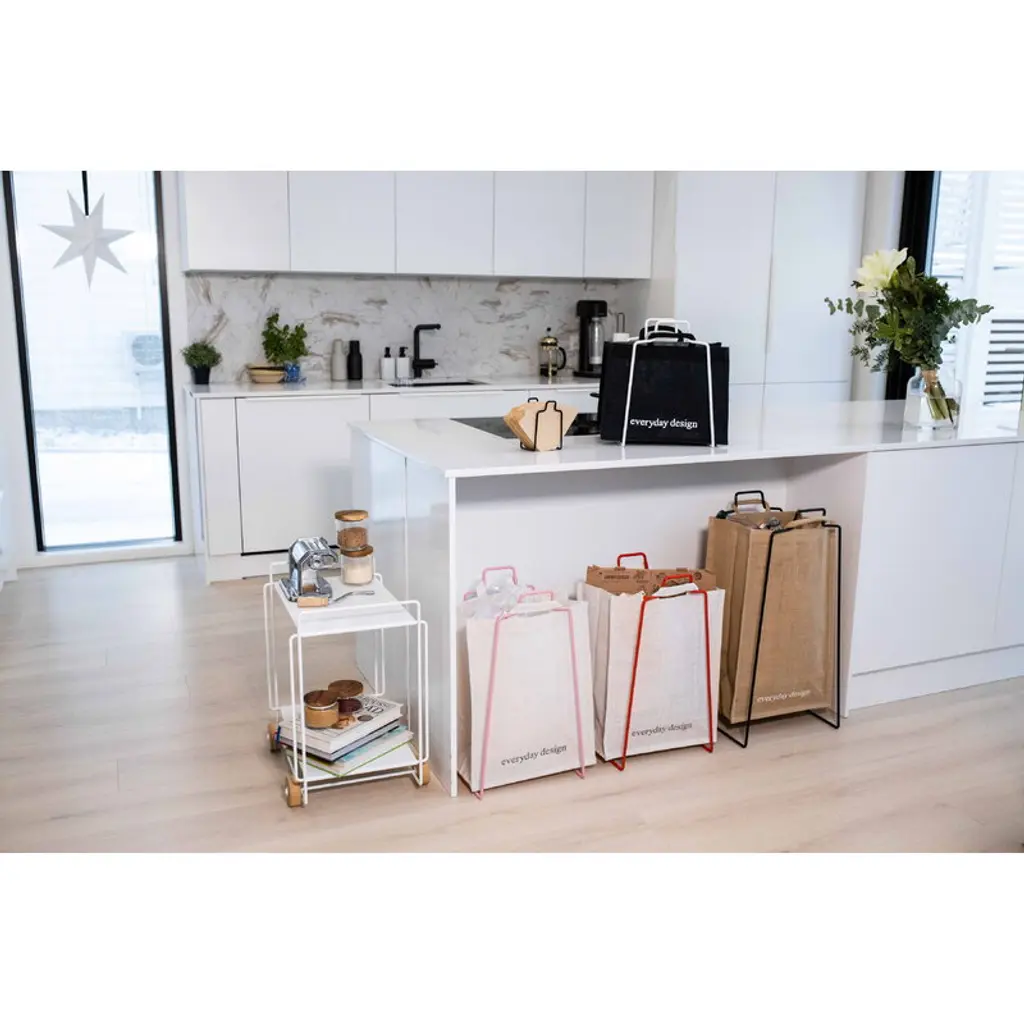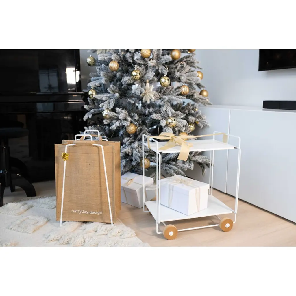 Everyday Design’s Tampere serving trolley is a handy, practical and cleverly sized helper to add more space to even the smallest spaces. The serving trolley is made of durable metal and features wheels made of aspen, with a natural look that brings soft warmth to the industrial appearance of the trolley. The multipurpose Tampere trolley can be used as a serving trolley for dinners, as an additional side table in the kitchen or as a shoe and accessory trolley in the hallway – the possibilities are almost endless! Designed by Helena Mattila, the serving trolley is manufactured in Finland and named after the Finnish town Tampere, which is the most populous inland city in the Nordics.