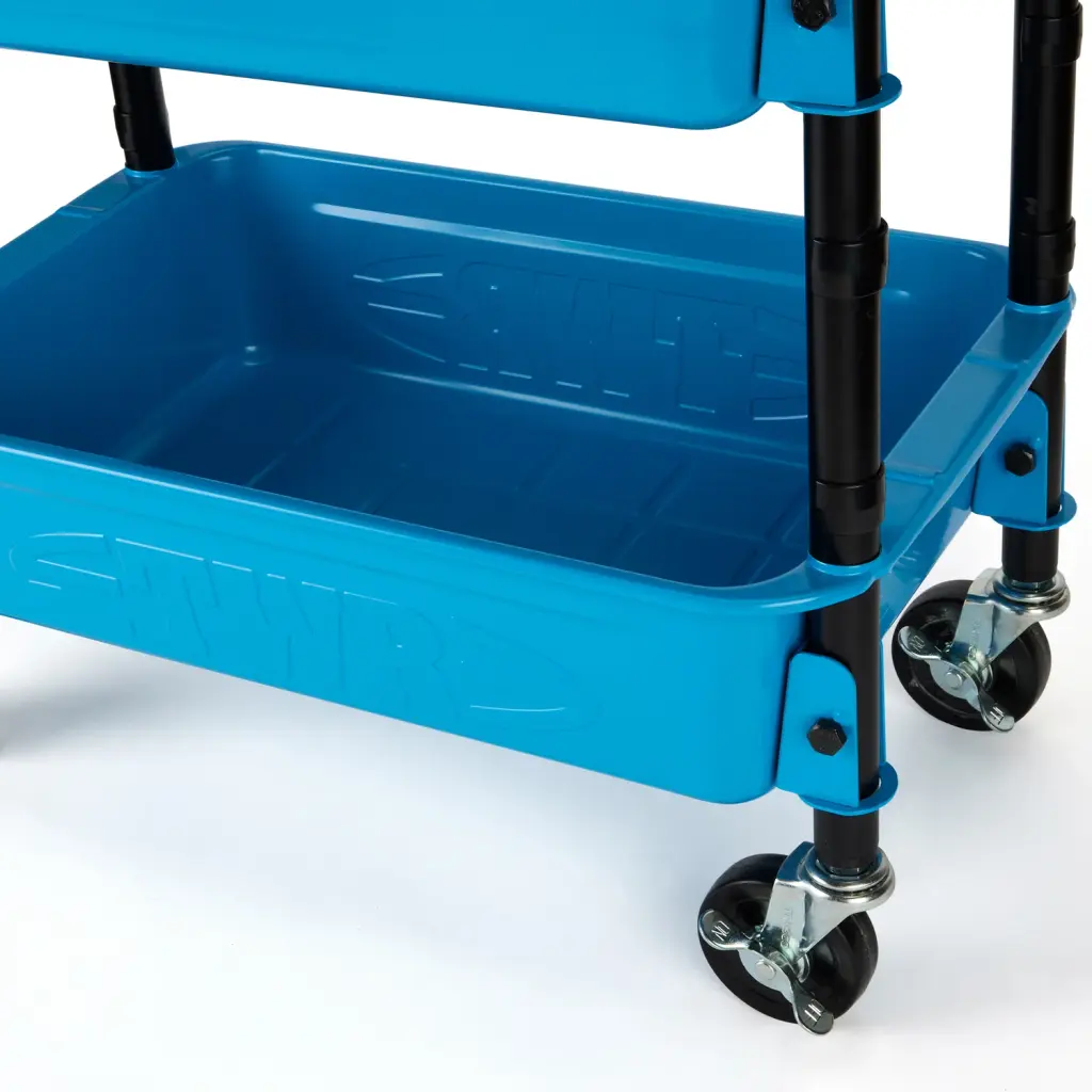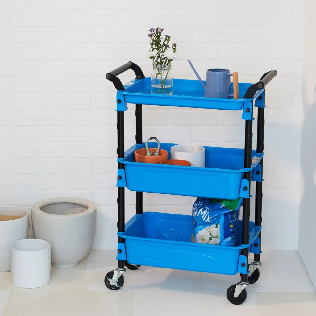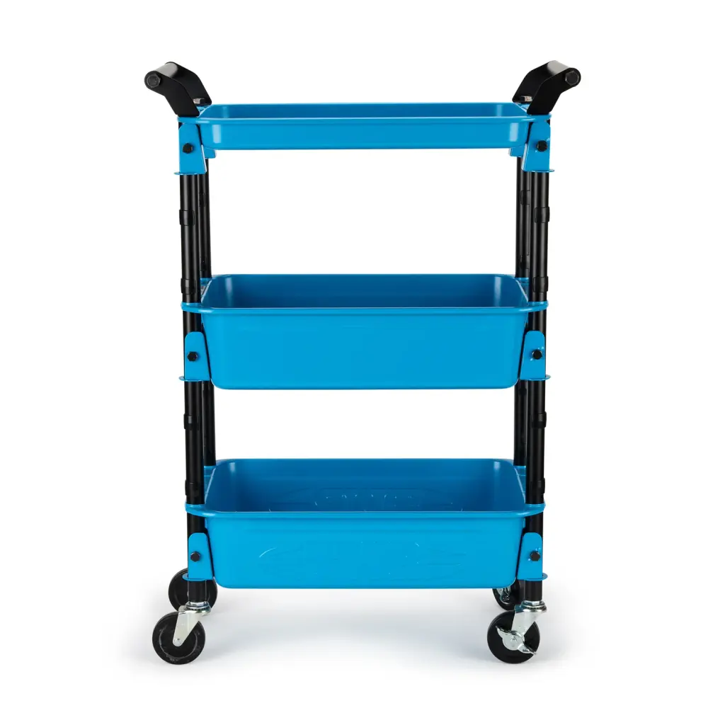 MoMA Exclusive: This high-quality, sturdy steel wheeled cart is incredibly versatile, and at just over 33”, it’s the perfect height to cozy up to a desk or work table for instant access to the tools, craft or office supplies you need to work comfortably. Two trays hold a good-sized supply of toys, tools, or even plants