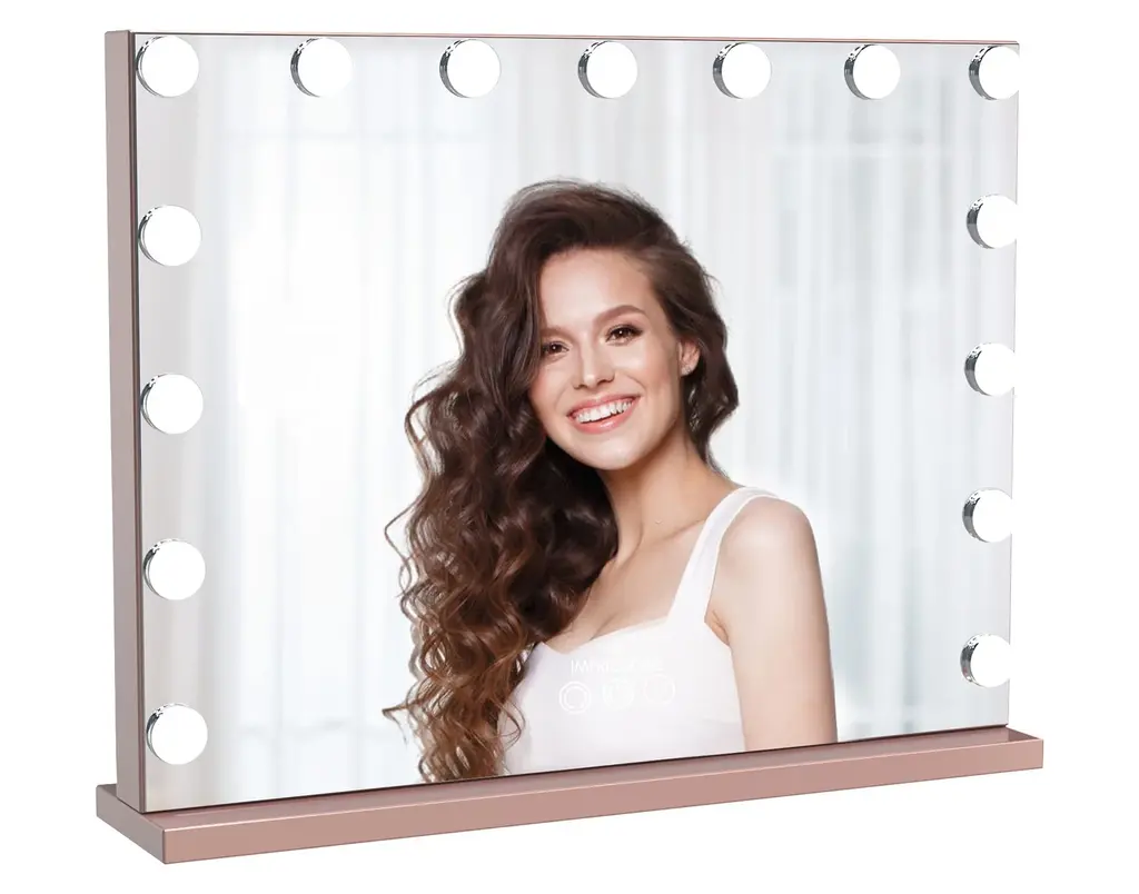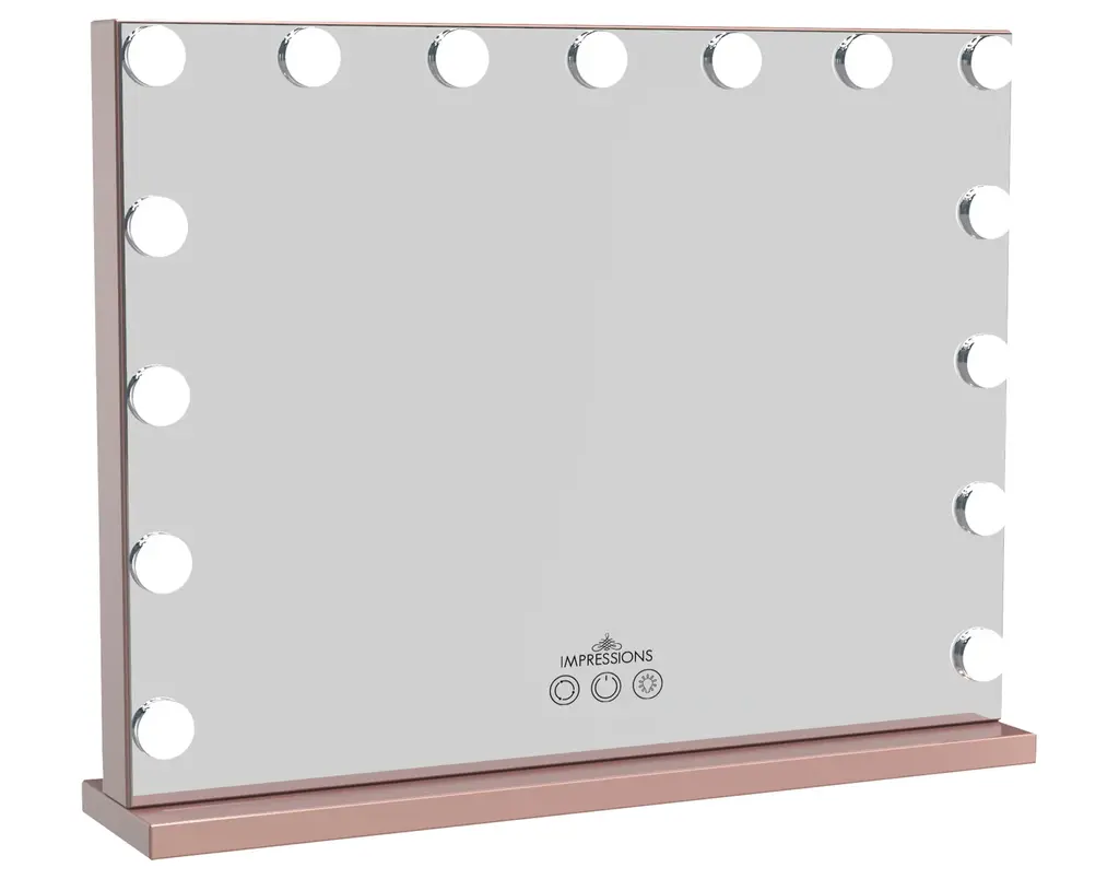 Impressions Vanity Hollywood Aurora vanity mirror provides perfect lighting and superior mirror reflection clarity. So, you can set it up in the home or professionally to take that perfect selfie. The lighted makeup mirror has 15 frosted LED lights and a dimmer switch knob to adjust the brightness. Also, it has energy efficient dimmable daylight LED bulbs to stay cool, so no heat comes from the bulb so makeup does not melt. This makeup mirror comes with a sturdy base that easily is wall mounted. If you want to surprise your loved one and looking for a gift then our Hollywood style mirror is a perfect gift for you. Its an ideal for valentines Day, Christmas, or other special occasions. You can use this Hollywood mirror as a tabletop or wall mount. With its strong study, you can easily set up the wall as a result, you can save your space.Features:HOLLYWOOD STYLE MIRROR: This gorgeous dressing mirror provides perfect lighting and superior mirror reflection clarity. So, you can set it up in the home or professional area and take a perfect selfieDIMMABLE LIGHT: This vanity mirror arrives with 15 frosted LED lights and a dimmer switch to adjust the brightness. Also, it has energy efficient dimmable daylight LED bulbs to stay cool, so no worry about heatSTAND BASE: You can use this Hollywood mirror as a tabletop or wall mount. With its strong study, you can easily set up the wall as a result, you can save spacePERFECT GIFT: If you want to surprise your loved one and looking for a gift then our Hollywood style mirror is a perfect gift for you. Its an ideal for valentines Day, Christmas, or other special occasions