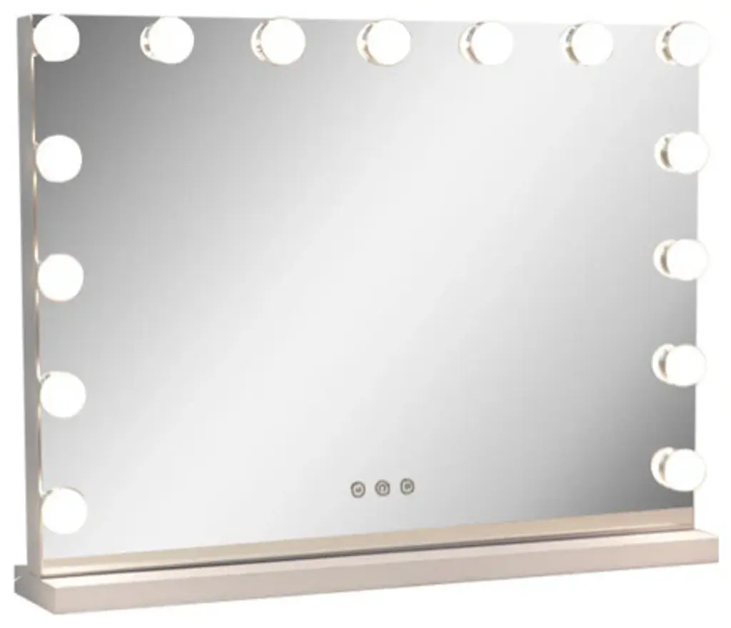 Impressions Vanity Hollywood Glow Plus is the newest size offering of our bestselling Hollywood Glow series. An ultimate statement in makeup vanity elegance, featuring our exclusive patented Hollywood Glow frame the unique, very chic, and modern design radiates a new brand of Hollywood glamour and simple sophistication that has made countless makeup lovers, pros, and beauty bloggers fall in love. Join thousands of happy owners and let your everyday glow.Features:ADJUSTABLE LIGHTING BRIGHTNESS: This makeup mirror with lights is surrounded by 12 pcs LED bulbs with adjustable glossiness. The dimmer switch helps to adjust different brightness that meets your personal makeup requirement, no matter it is early morning or late nightPERFECT SIZE MIRROR: This Hollywood vanity mirror has a perfect size, providing a beautiful view. It is an ideal gift and provides timeless aesthetic and studio-quality lighting that will illuminate you evenly from all directionsDETACHABLE BASE: This large wall mirror is designed with a detachable base which makes it a hanging mirror. It can hang on the wall without the base or stand on the table with the base, It can be used in both ways to make your vanity more beautifulCHARGING USB PORTS AND OUTLETS: This dressing table mirror includes side-mounted outlets and USB ports on the side for you to power up or charge your beauty accessories, smartphone, or other USB devices