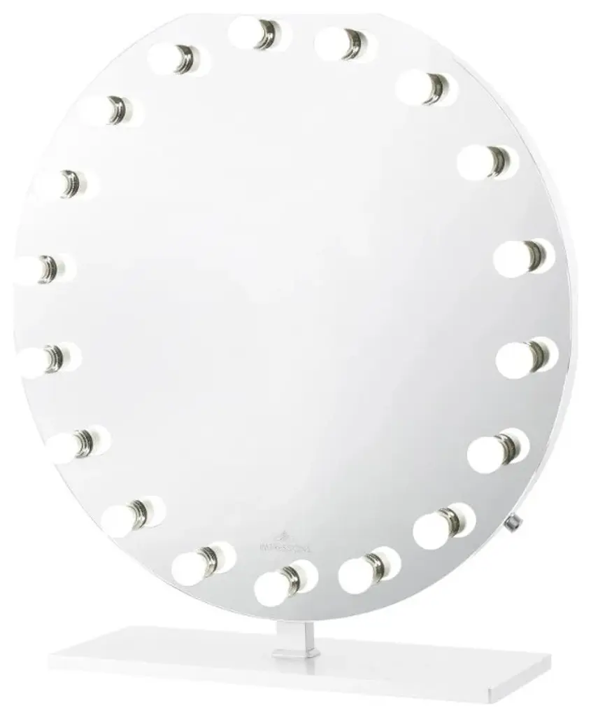 Impressions Vanity presents Monarch Pro Hollywood mirror, Our uniquely styled makeup mirror for the vanity that lets you look your best. Create a luxurious ambiance in your glam room with this LED mirror for makeup. This smart desk mirror has a ring of bright LED bulbs around it which provides you with even lighting to illuminate your entire face. You can dimmer this lighted makeup mirror simply by swiveling its Builtin knob. This Hollywood vanity mirror with lights lends a glamorous yet modern look to any room with ultra bright studio quality lighting. Add charms to your glam room with the mood enhancing effects of the most luxurious mirror yet. The likes of which you have seen used by the industrys top influencers and celebrities.Features:SMART VANITY MIRROR: You can see your entire uppermost front and do your makeup with this classy round shaped mirror. This personal lighted mirror has a perfect size of width 35.6 inches and a height of 38.3 inchesADJUSTABLE BRIGHTNESS: This light-up mirror for makeup adopts an LED strip lights design and a builtin knob dimmer switch. which Provides bright but soft and natural light that will protect your eyes, safe for home useHOLLYWOOD STYLE AT HOME: Our vanity mirror for the table has clear reflection with no distortion, allowing you to complete your beauty routine and daily personal care. It also has a sturdy rectangle base for its durabilityPERFECT GIFT: This Hollywood mirror with lights is exceptionally helpful and smart. So in case you are searching for a gift, it can be an ideal gift for mothers Day, Christmas, an anniversary, or other occasions