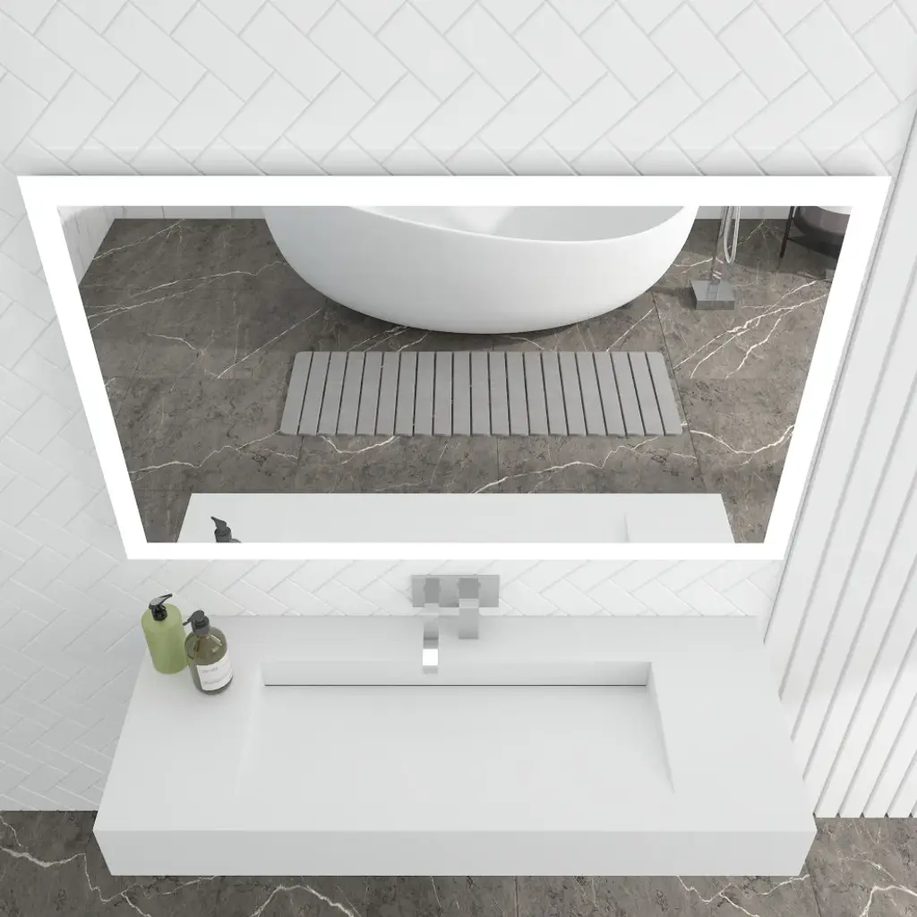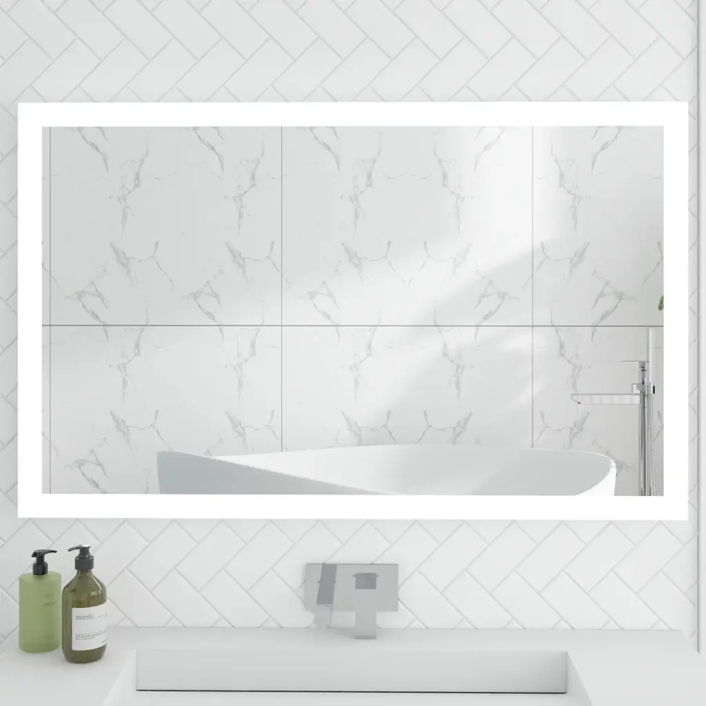 The Sabrina LED Bathroom/Vanity Mirror features a minimalist flat design that blends seamlessly into any space without standing out too much. Crafted from sleek glass, this modern mirror has built-in energy-efficient white LED lighting around the edges, providing bright, even illumination. Designed for easy plug-in installation with no extra wiring required, it comes with a standard 3-prong plug and can be mounted vertically or horizontally to fit your space.-Sleek glass construction for a modern, streamlined look-Easy plug-in installation with no extra wiring required-Versatile mounting options, vertical or horizontal-Minimalist flat design that complements any bathroom decor-Built-in energy-efficient white LED lighting for clear, bright visibility