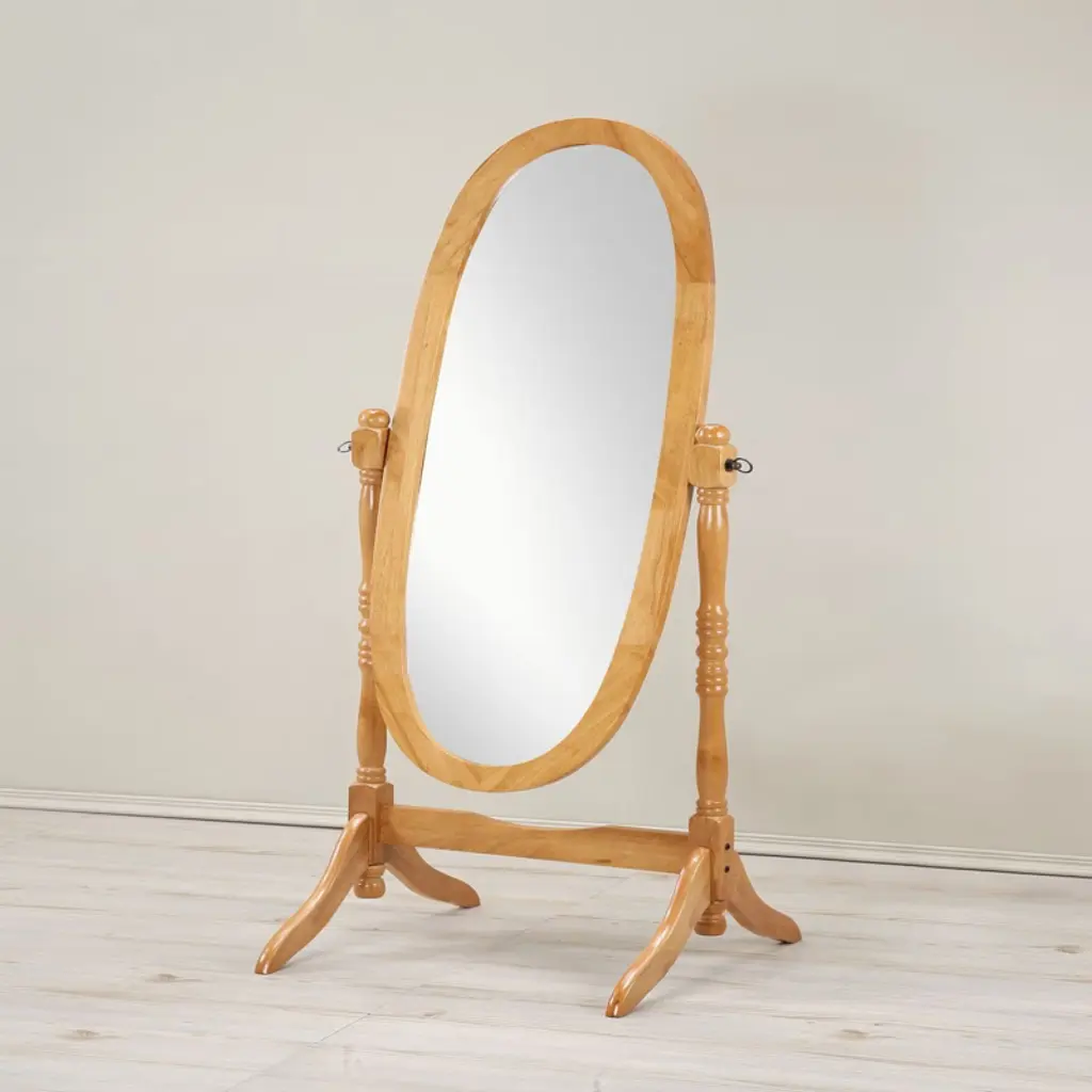 SEVOBAL Bathroom Vanity Mirrors Elegant Freestanding Cheval Mirror with Adjustable Tilt and Sturdy Wood Frame Enhance your room with this timeless freestanding cheval mirror from SEVOBAL. Designed in an elegant Queen Anna style, it features a smooth tilt mechanism for full-body reflection, perfect for any bedroom or hallway. Its sturdy wood frame and turned posts ensure durability and long-lasting stability, while the easy assembly adds convenience to your home decor.
