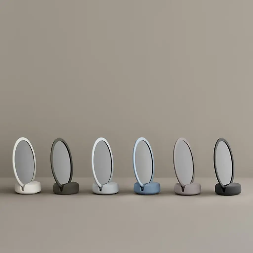 Tidy up at your dressing table, bathroom, or couch with the versatile Sono Vanity Mirror from Blomus. Set the piece up on any table surface with its cool matte base. Its crisp mirror stands out with a sharp circular trim; it slots into the recession of the base and can be taken out freely for handheld uses. The mirror’s 5x magnification highlights your smile in all its glory.