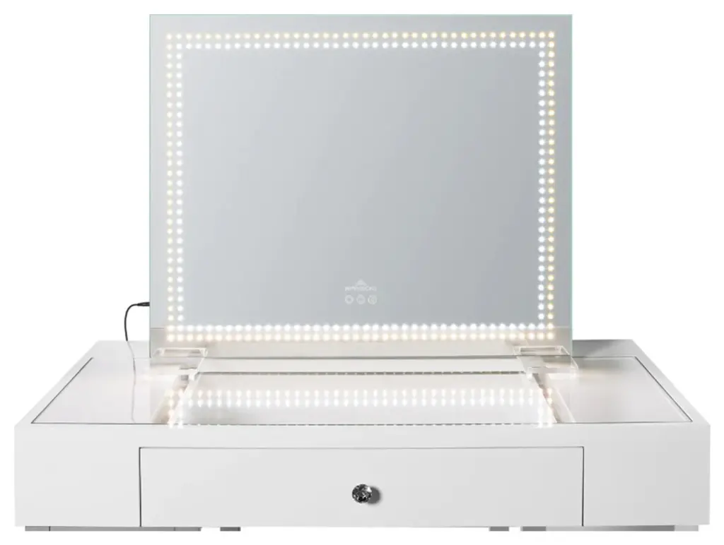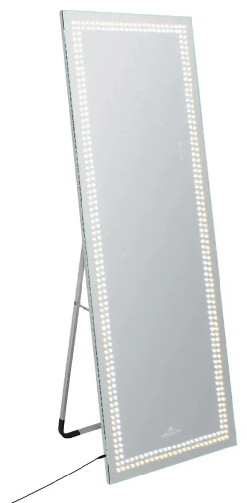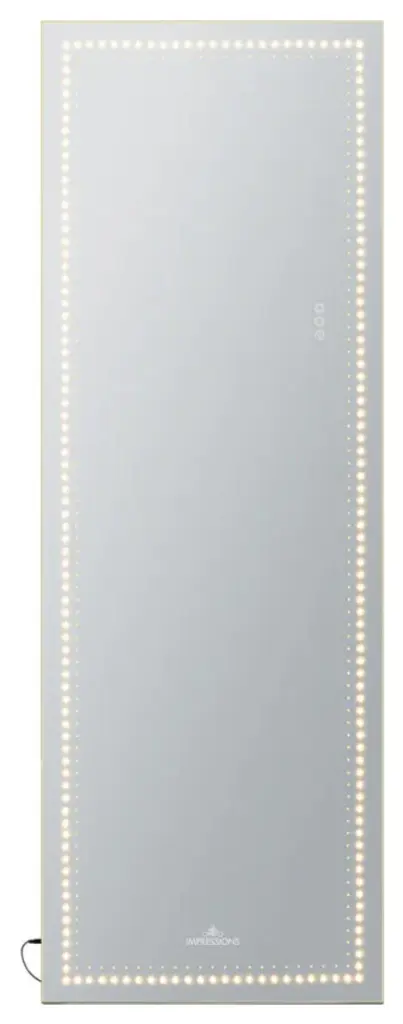Impressions Vanity focuses on providing customers with high quality vanity makeup mirrors with LED light products. We strive for simple, stylish, and multifunctional designs that can improve your quality of life. Meticulously crafted to meet the exacting standards of beauty enthusiasts and makeup artists alike, this mirror is the epitome of elegance and functionality. Illuminate your face with precision and clarity, allowing for meticulous color matching and seamless blending. No more worrying about uneven or inadequate lighting this mirror guarantees consistent illumination for professional level results. Moreover, to enhance mobility and versatility, the vanity mirror comes with a foldable easel leg stand design or builtin wall anchors for displaying on either your floor or wall.Features:STYLISH DESIGN: The Ultra slim, lightweight vanity mirror with sleek strip lights adds a touch of elegance to your vanity room and its sturdy backing allows for easy movementTWO IN ONE DESIGN: The vanity mirror with lights has a foldable easel leg stand design or builtin wall anchors for displaying on either your floor or wallTHREE COLOR TEMPERATURE: The vanity mirror is surrounded by LED dot formations or sleek strip lights with three color temperatures Cool White, Natural, and Warm to achieve accurate makeupTOUCH SENSOR: The big mirror has a smart touch control system with a power on or off button and dimming function, so you can get professional makeup studio lighting at your fingertipsCUSTOMER SATISFACTION: You will receive premium after sales service through our shipping, return, and refund policy. If you have any issues with this item, please contact us. Your pleasure is important to us