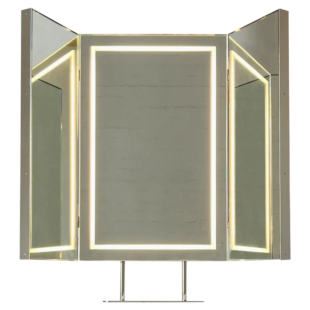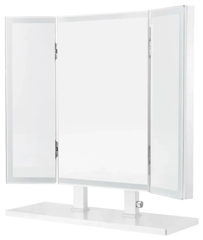 Impressions Vanitys beautiful and amazing premium vanity mirror with lights is made with 3 sets of mirrors that have LED light strips integrated within them which makes the makeup mirror very desirable and attractive. The portrait orientation makeup mirror has been fitted with an energy efficient LED light strip. The vanity lighted makeup mirror has adjustable brightness properties which are controlled with the dimmer knob switch. The iconic looking mirror is there for you at all times as it provides you with the perfect lighting solution for you while doing your makeup.Features:CONTROLLED LIGHTING: The dimmable lighting is controlled through a built in knob dimmer switch which allows you to control the lighting system to your wish and set your desire to set for your mirror lightingPERFECT DESIGN: The portrait design of the mirror allows you to see yourself in different positions while standing in a single place. This allows you to have the best view of yourself at all timesBEST BASE: The vanity mirror with lights has a strong rectangular base which perfectly supports the overall weight of the mirror. You can effortlessly set the mirror on your desk without having to worry about balancingBRIGHT LIGHTING: The energy efficient efficient LED light strip provides you with the perfect lighting setup for makeup. Get equally balanced lighting at all times with a dimming feature