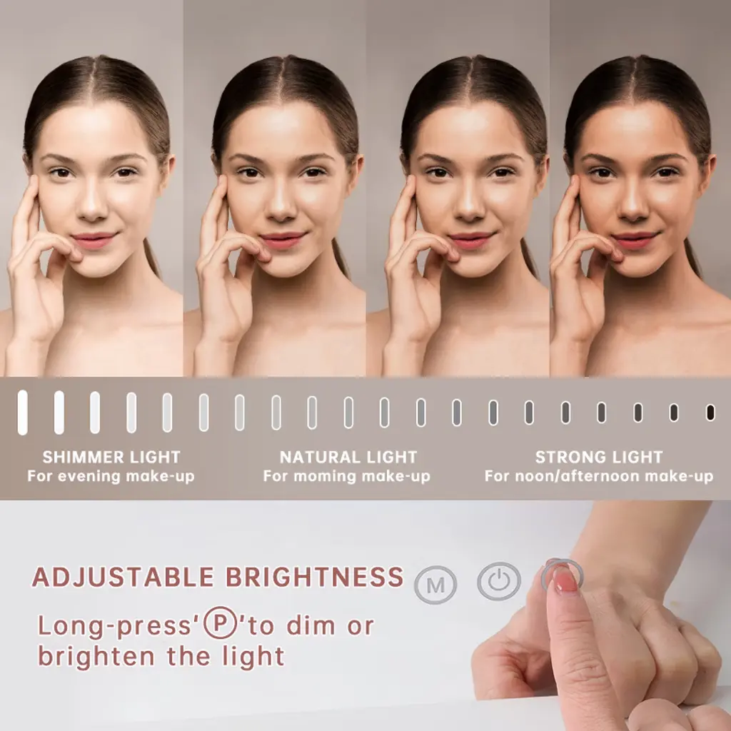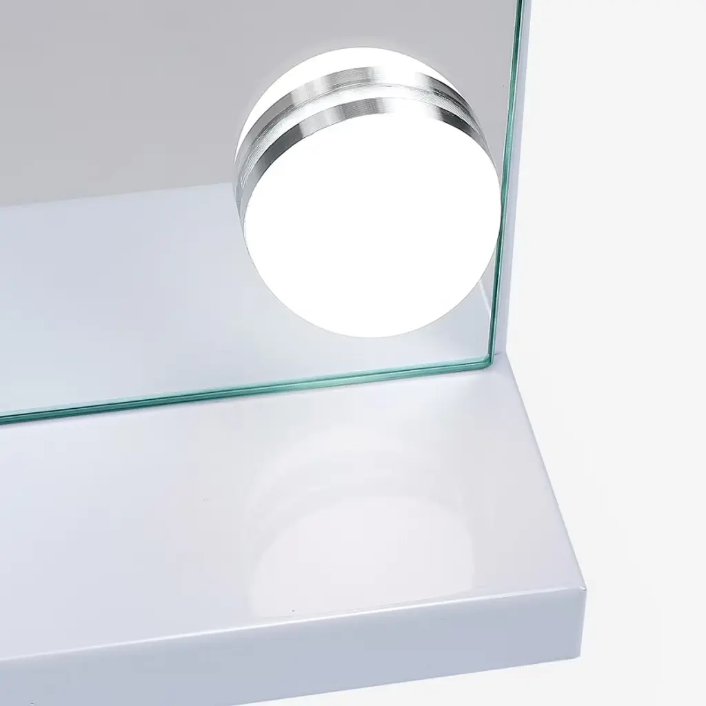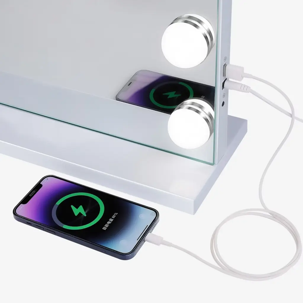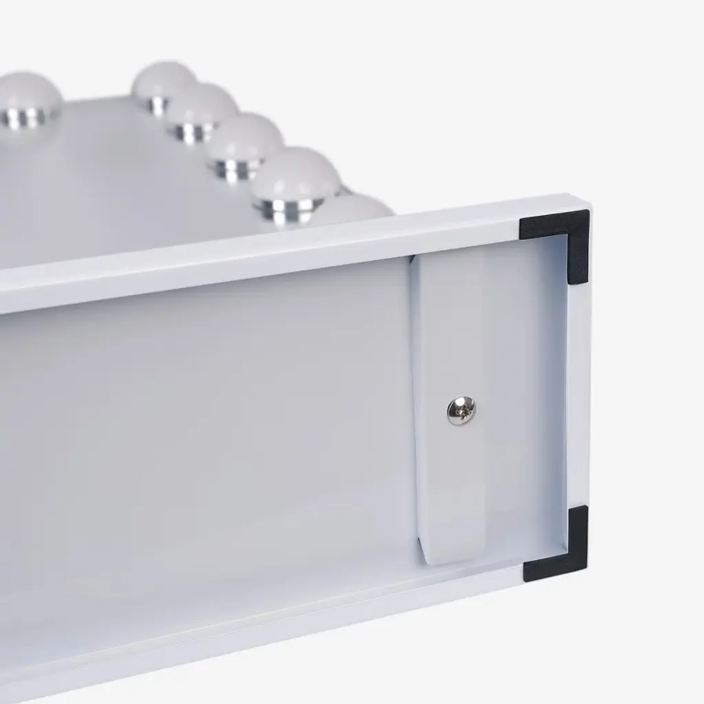 Large Size & 18 LED Bulbs32"x 23", this Hollywood Vanity Mirror has a large size providing you with a perfect upper body view.Adjustable Brightness & 3 Light SettingsThere are 3 different light settings with the ability to dim and brighten each setting: warm light, day light and cold light.USB Charging PortThere is a USB charging port on the right side for you to charge your phone or other USB devices.10X Magnification MirrorThere is a detachable 10X mini Magnification Mirror included for you doing makeup. Wall Mounted OptionWith a detachable base and there are 2 holes on the back for nails. You can either place the Vanity Mirror on tabletop or on wall.