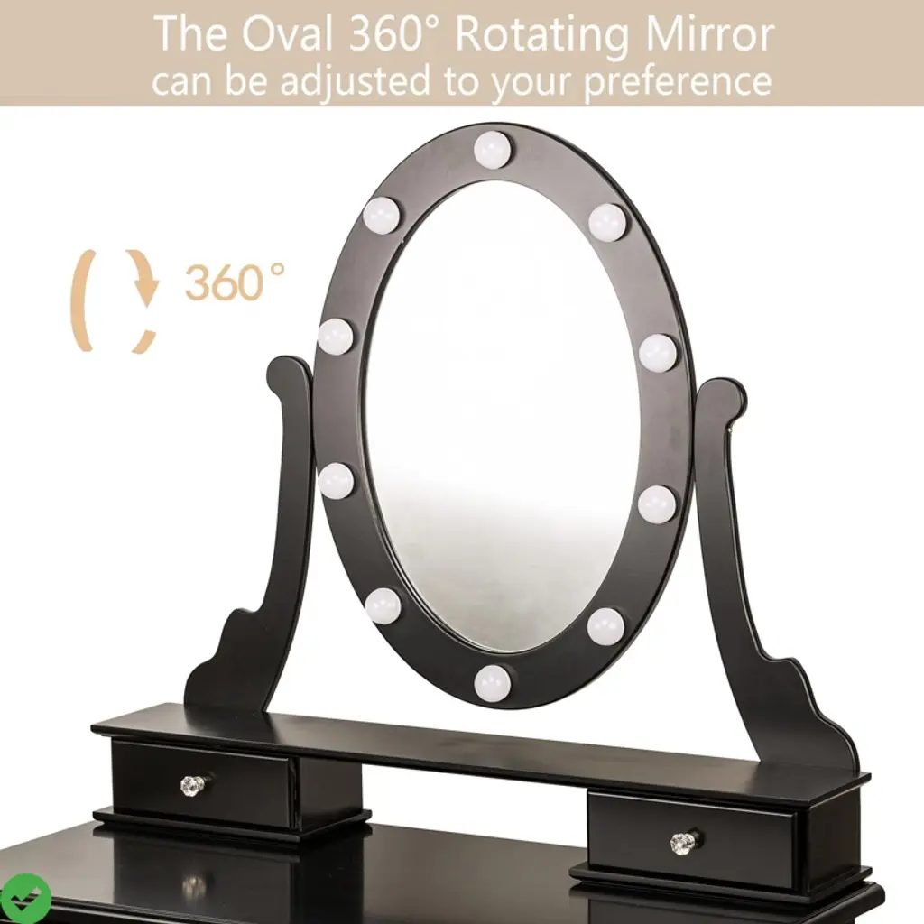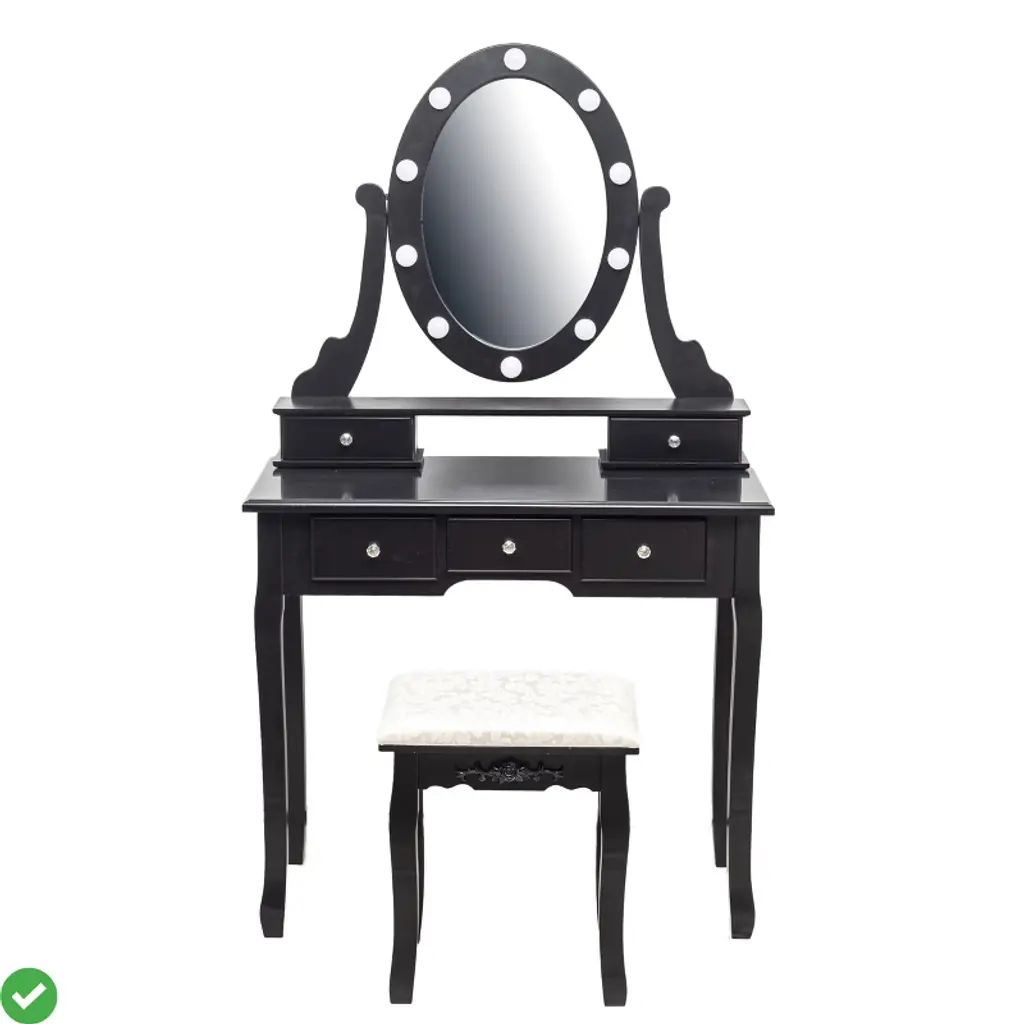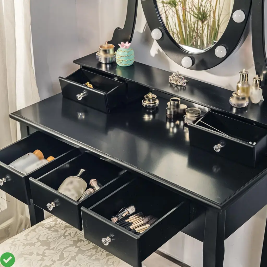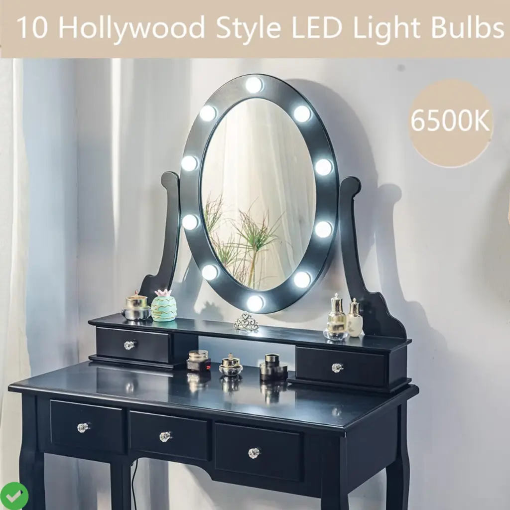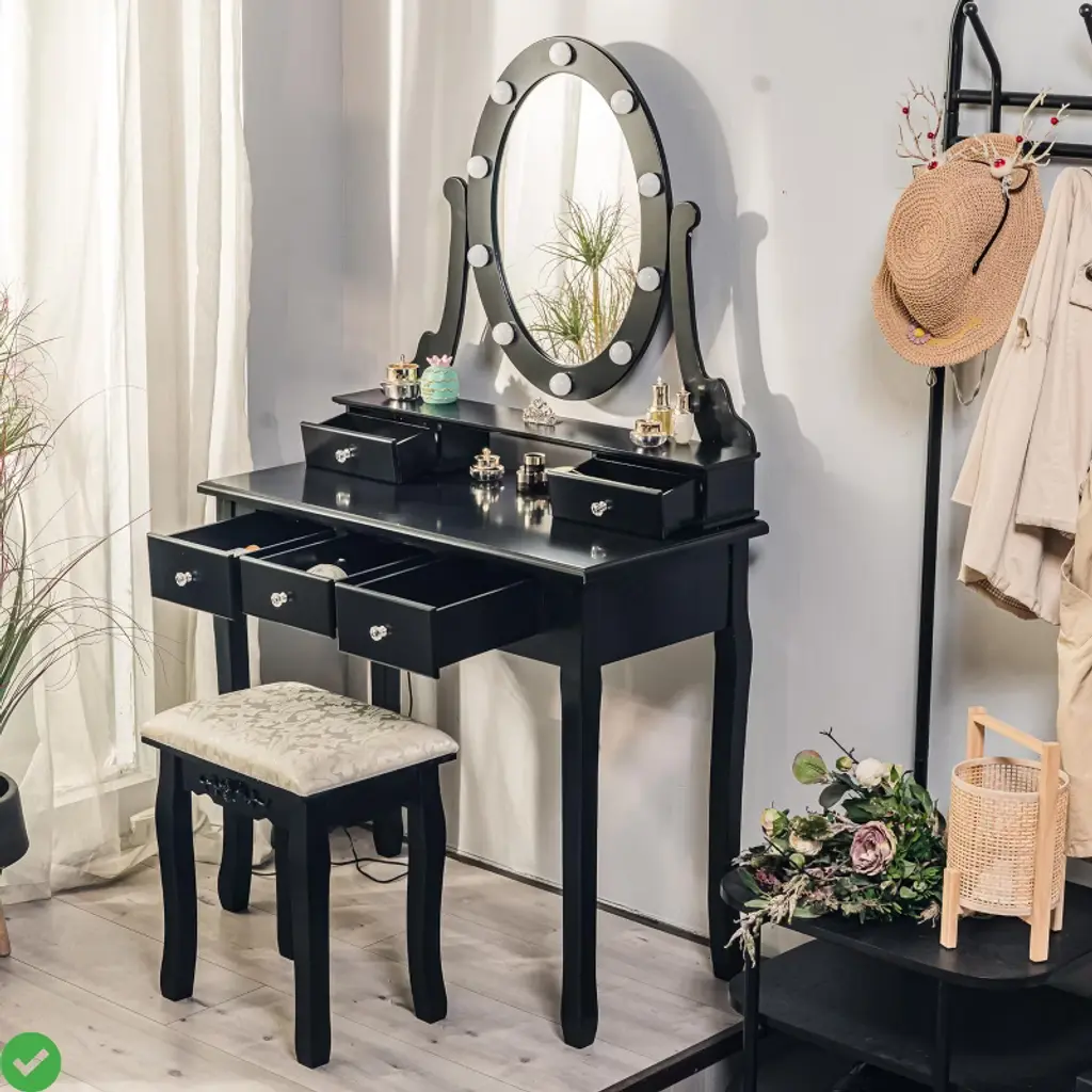 Vanity Desk Vanity Mirror W/lights And Table Set With 5 Drawers, Wood Makeup Dressing Table