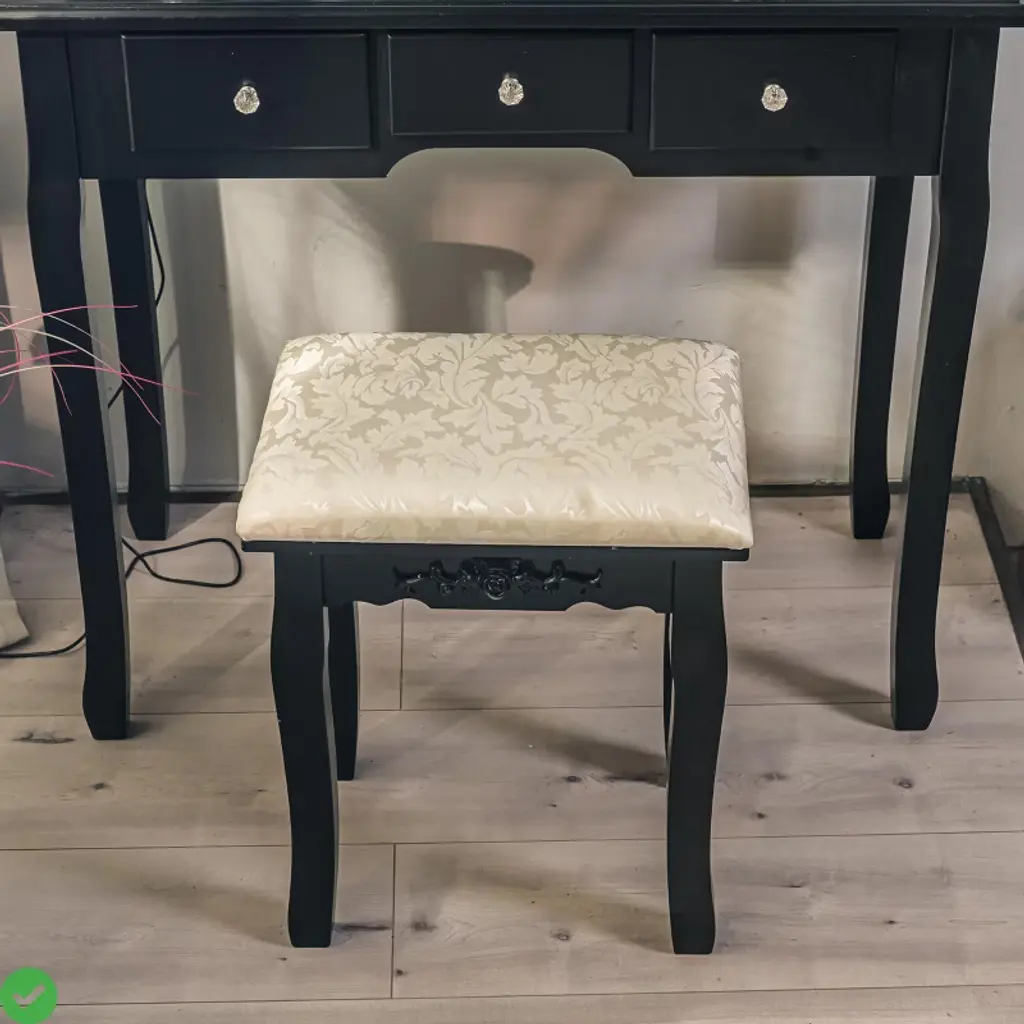 The vanity set is made of high-quality and durable MDF, which is not prone to deformation and cracking. Additionally, the solid pine legs of the table and stools enhance the load-bearing capacity and stability of the set, providing reliable and durable furniture£¬Small Moder Makeup Vanity Desk with Mirror and Lights Girls Vanity Table Set with 5 Storage Drawer.