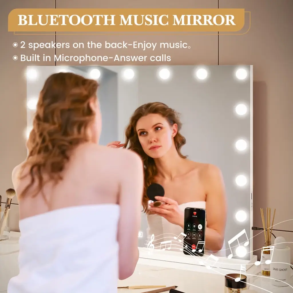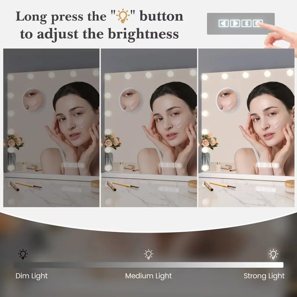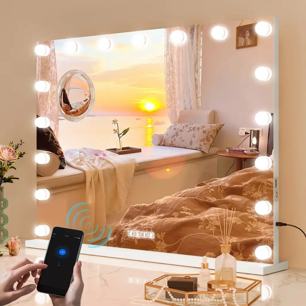Product Description:Looking for a makeup mirror that reveals your makeup in true detail? Our large mirror, combined with circular LED fill-in technology, eliminates facial shadows, ensuring every makeup stroke is perfectly applied!Escaping the hassle of applying makeup in dim light? This mirror features three color temperature settings: natural light, warm light, and cool light, providing a professional-grade lighting experience from morning to night.Looking to add a touch of modern technology to your vanity? This mirror features infinite dimming at the touch of a button, and its slender aluminum alloy base blends effortlessly into any home, instantly enhancing the style of any space.**Product Specifications:**Material: Aluminum Alloy Frame + High-Definition Silver-Coated GlassMirror Diameter: 19 inches (approximately 48 cm)Color Temperature Range: 3000K-6000K (Adjustable in Three Colors)**Packaging Contents:**1 x Vanity Mirror1 x Base1 x Charging Cable1 x User Manual**Tips:**Please charge the mirror before use. A full charge is recommended for first-time use.Handle the mirror with care when adjusting the angle to avoid impact with hard objects.Clean with a soft cloth and avoid using abrasive cleaners.