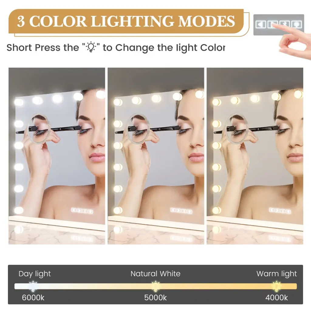 Vanity Mirror With Lights, Large Makeup Mirror, 3 Color Lighting Modes Tabletop, Fashion Bathroom Mirror For Dressing Room,bedroom, Plug In