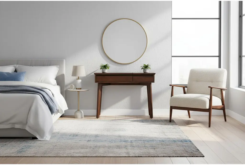 Introducing the Draper Brown 1-Drawer Wood Bedroom Makeup Vanity Desk. This mid-century modern piece combines function and style with its walnut finish and acacia wood construction. The flip-top glass mirror and ample storage make it a versatile addition to your bedroom.