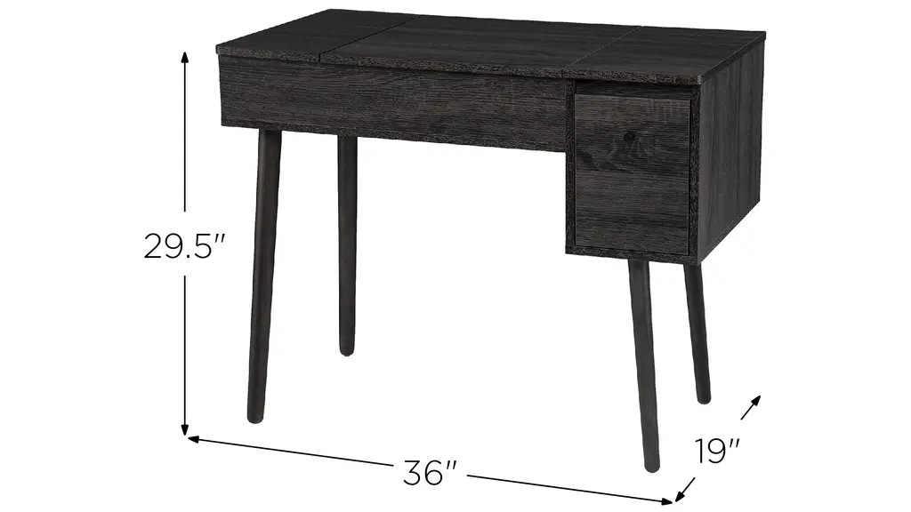 Show your true style colors with this Epping Vanity. A flip-up mirror opens to reveal a spacious hidden storage compartment, stowing hair tools or makeup in tidy style. A deep drawer and second flip-up compartment hide beauty secrets, while unique telescoping legs lay bare a sleek, retro silhouette.