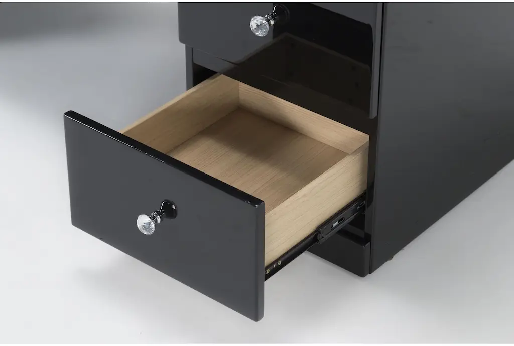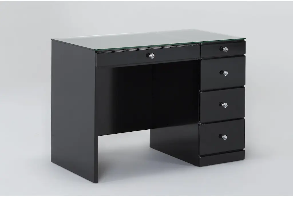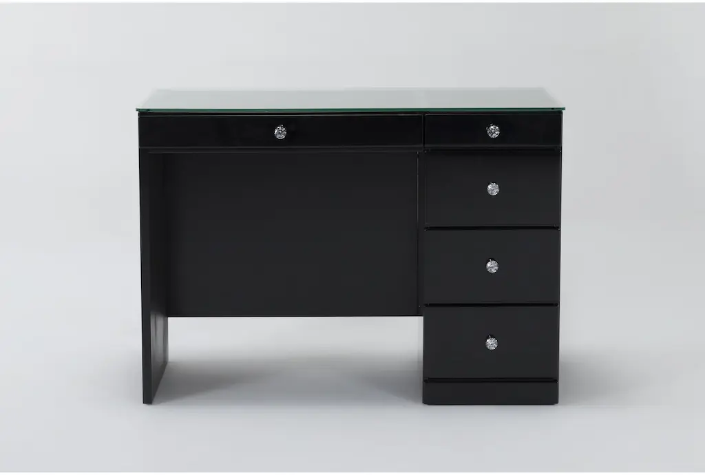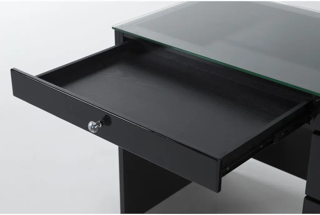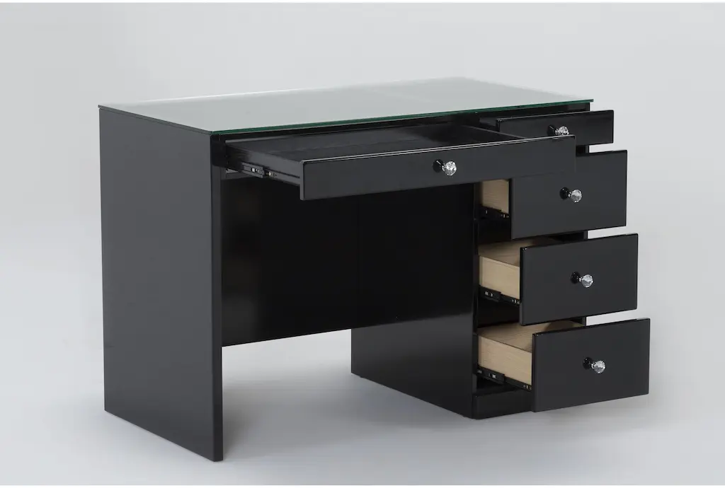 Mya Black Glass Top 5-Drawer Bedroom Makeup Vanity Desk